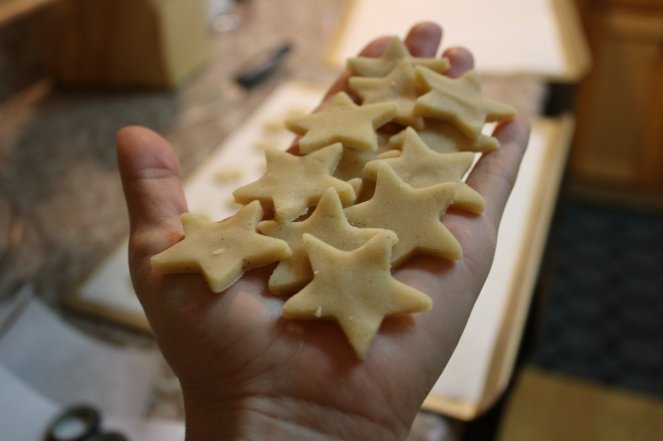 Once chilled and rolled out, it’s time to break out the mini cookie cutters. I chose the mini star shape, though any of them would be cute!