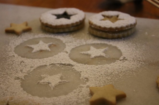Recipe mostly from: http://littlespicejar.com/raspberry-almond-linzer-cookies/