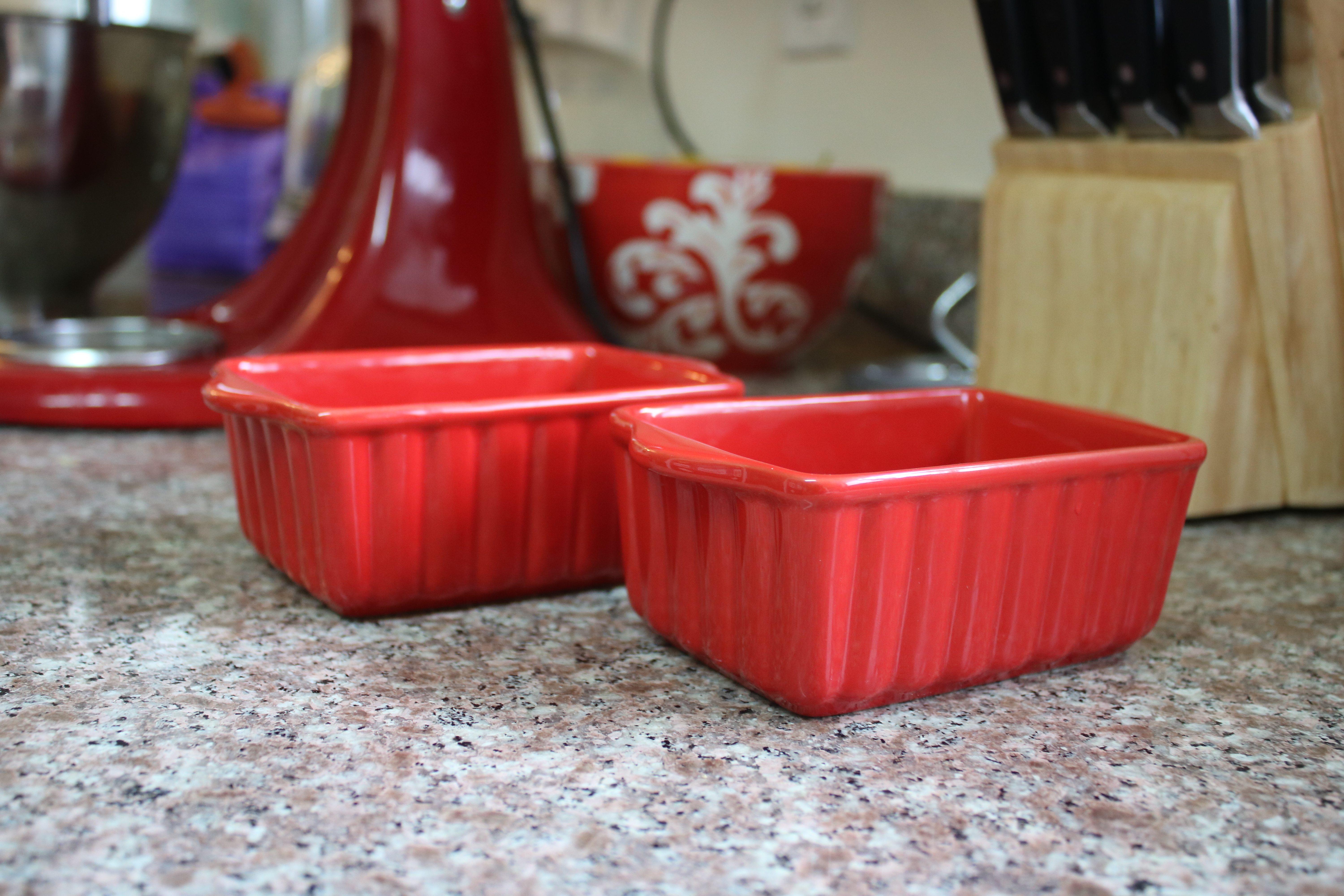 Continuing the red and white theme in my kitchen utensils: introducing my new ceramic mini loaf pans!