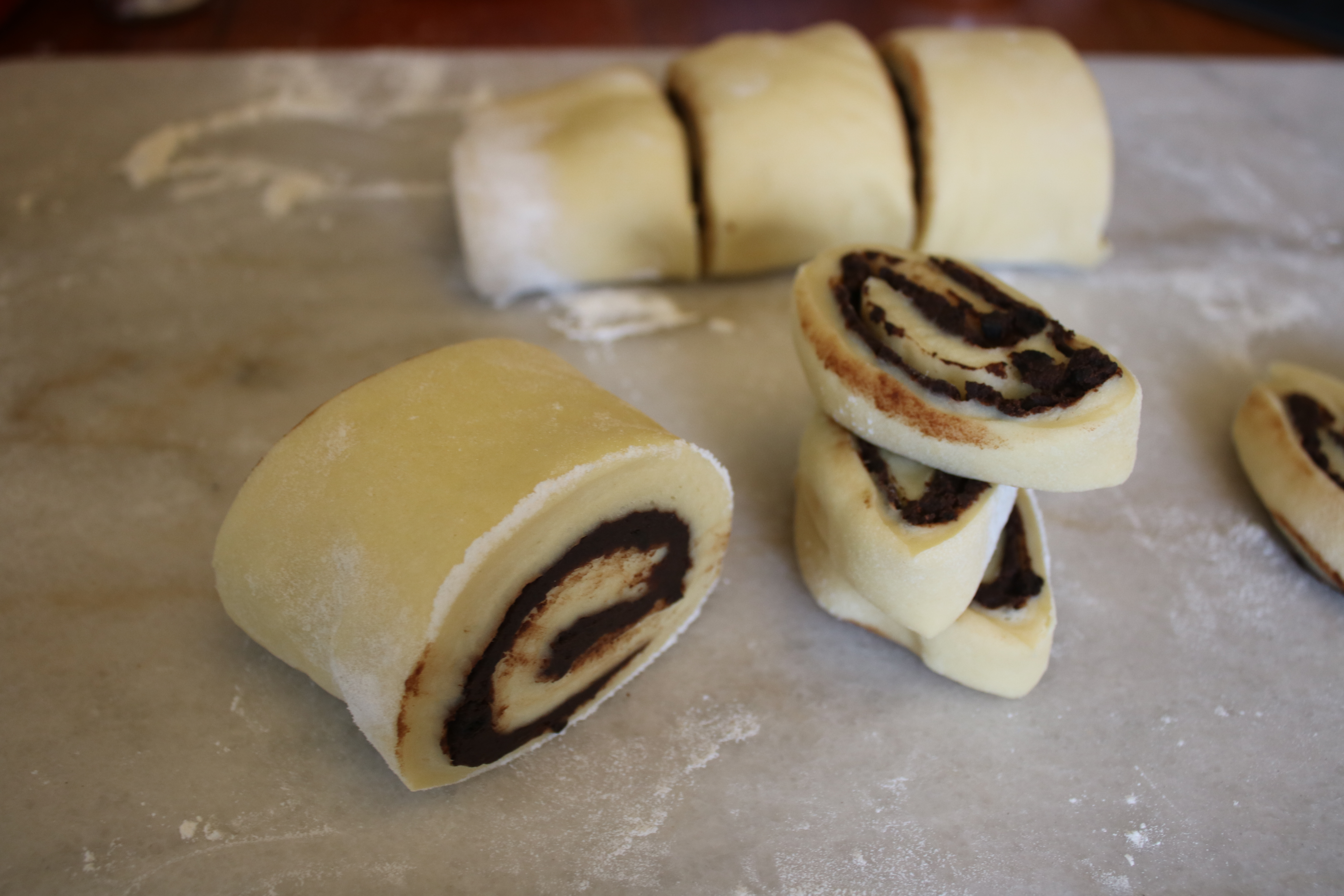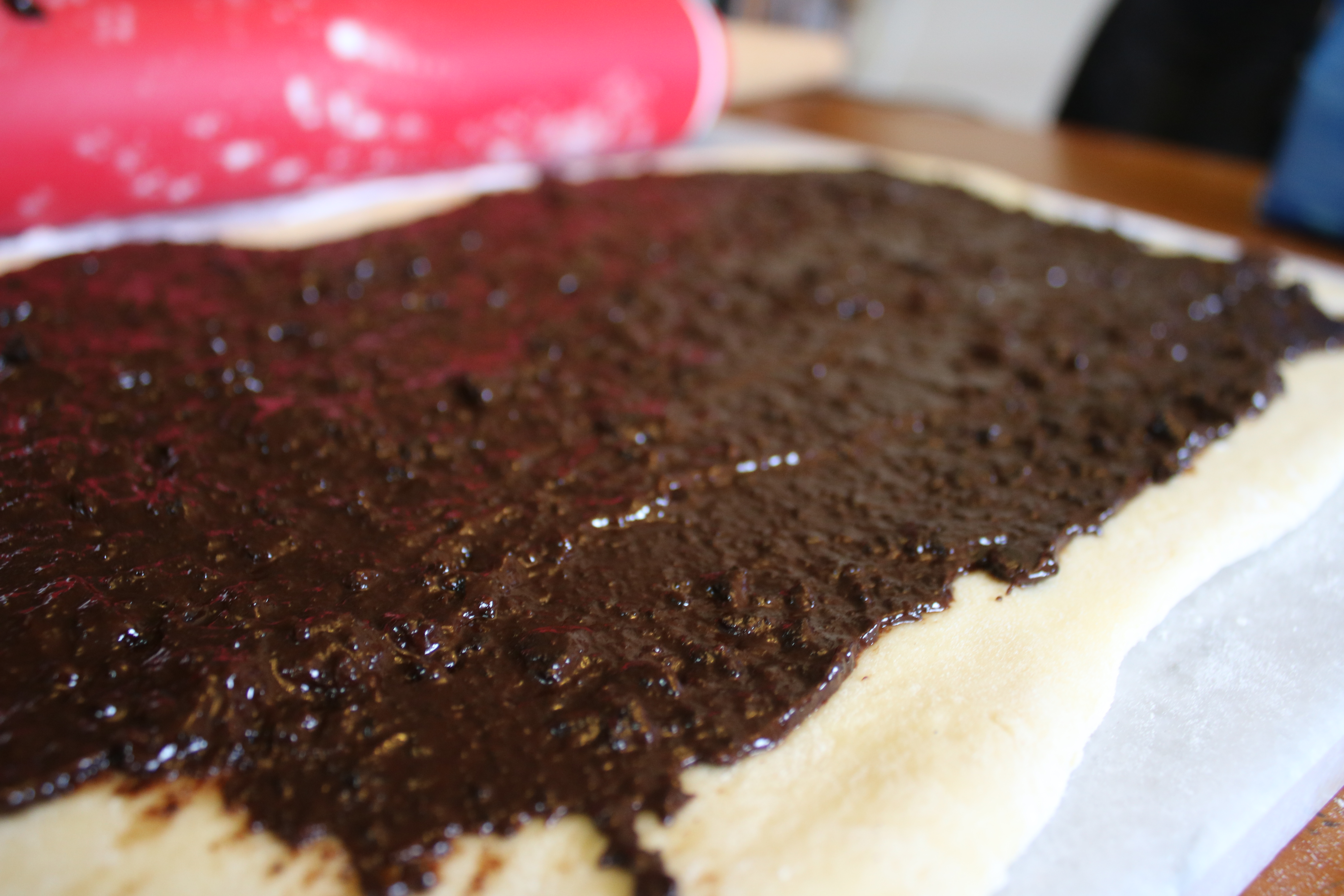 While waiting for the dough to proof, there was plenty of time to prep the filling. (My inner spelling critic is cringing, but I’m almost positive that you use ‘proofing’ as opposed to ‘proving.’) The filling was so interesting – it’s actually crushed chocolate wafer cookies mixed with melting chocolate and butter. Gotta have that crunchy texture!