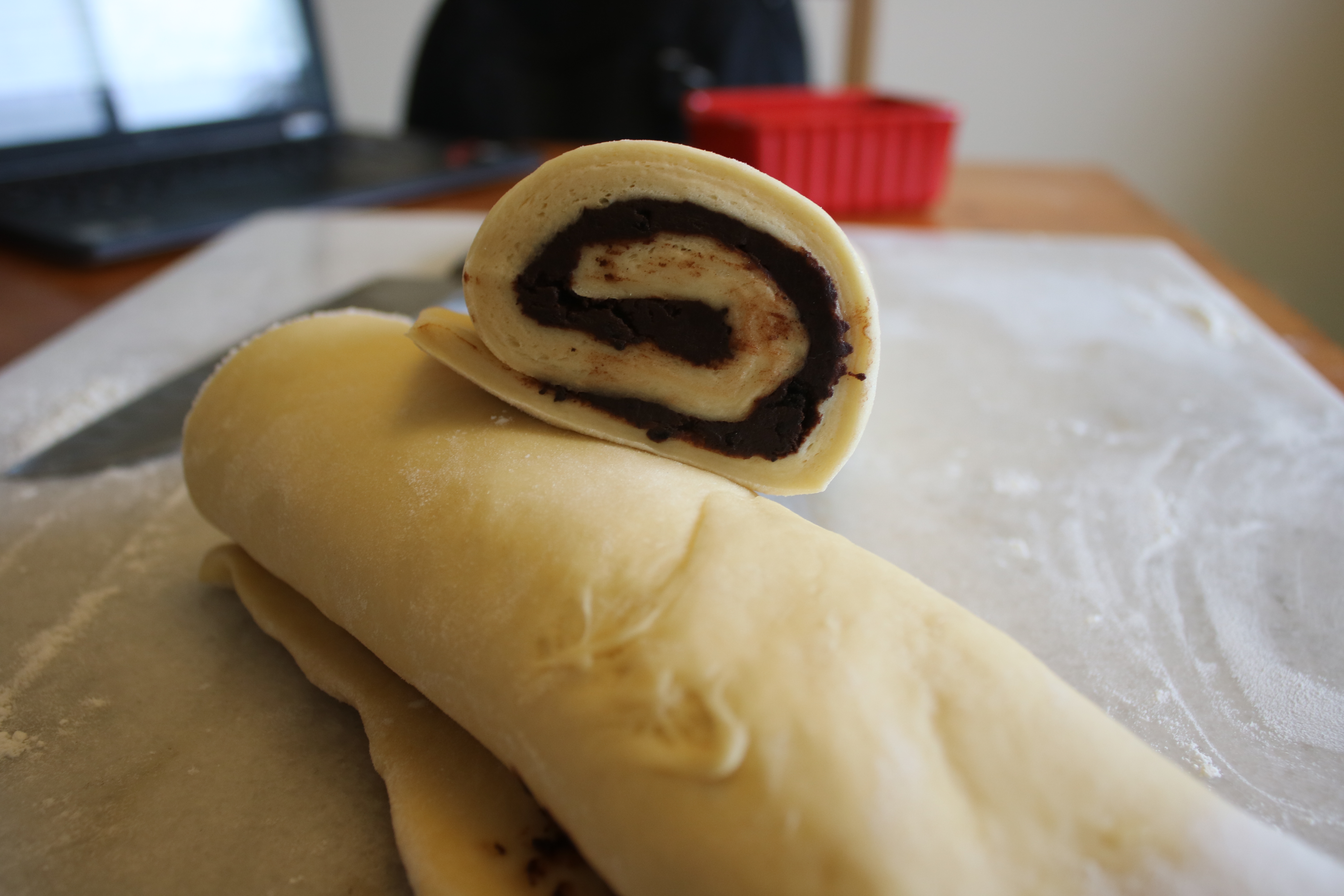 This called for a loose fold instead of a tight curl. I’m assuming that it helps keep the light texture during baking!