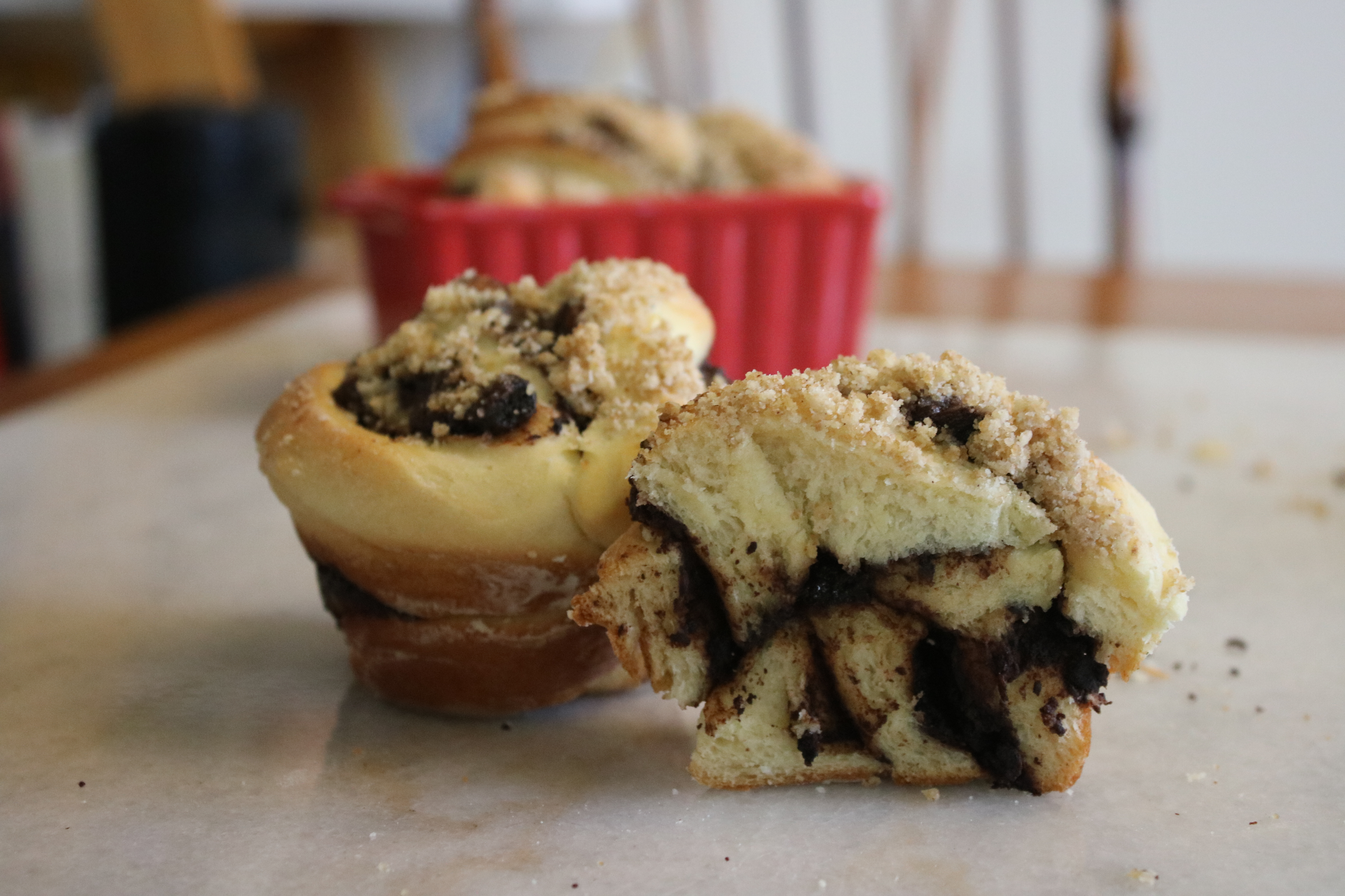 Recipe from: joythebaker.com/2017/12/chocolate-babka-pull-apart-muffins/