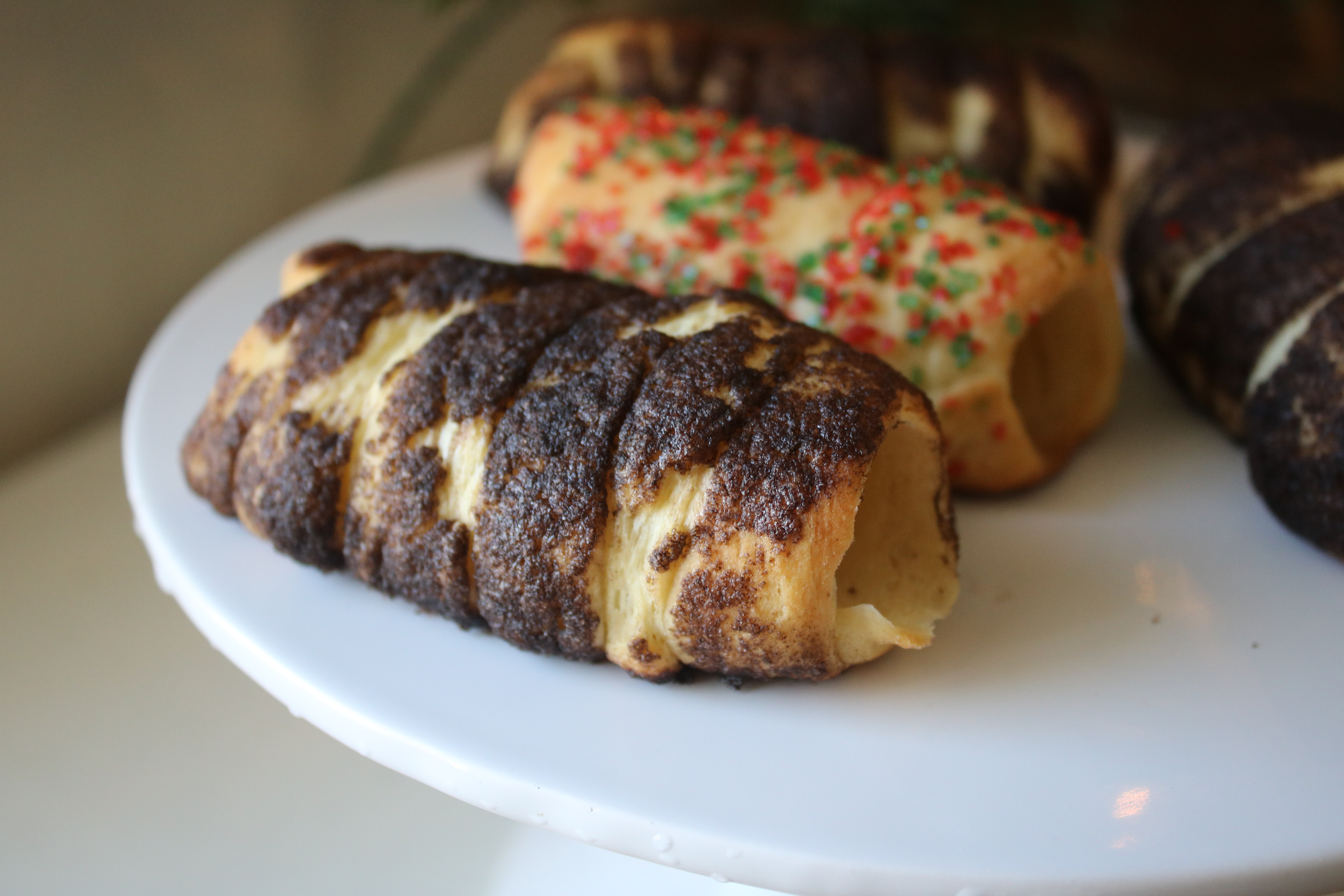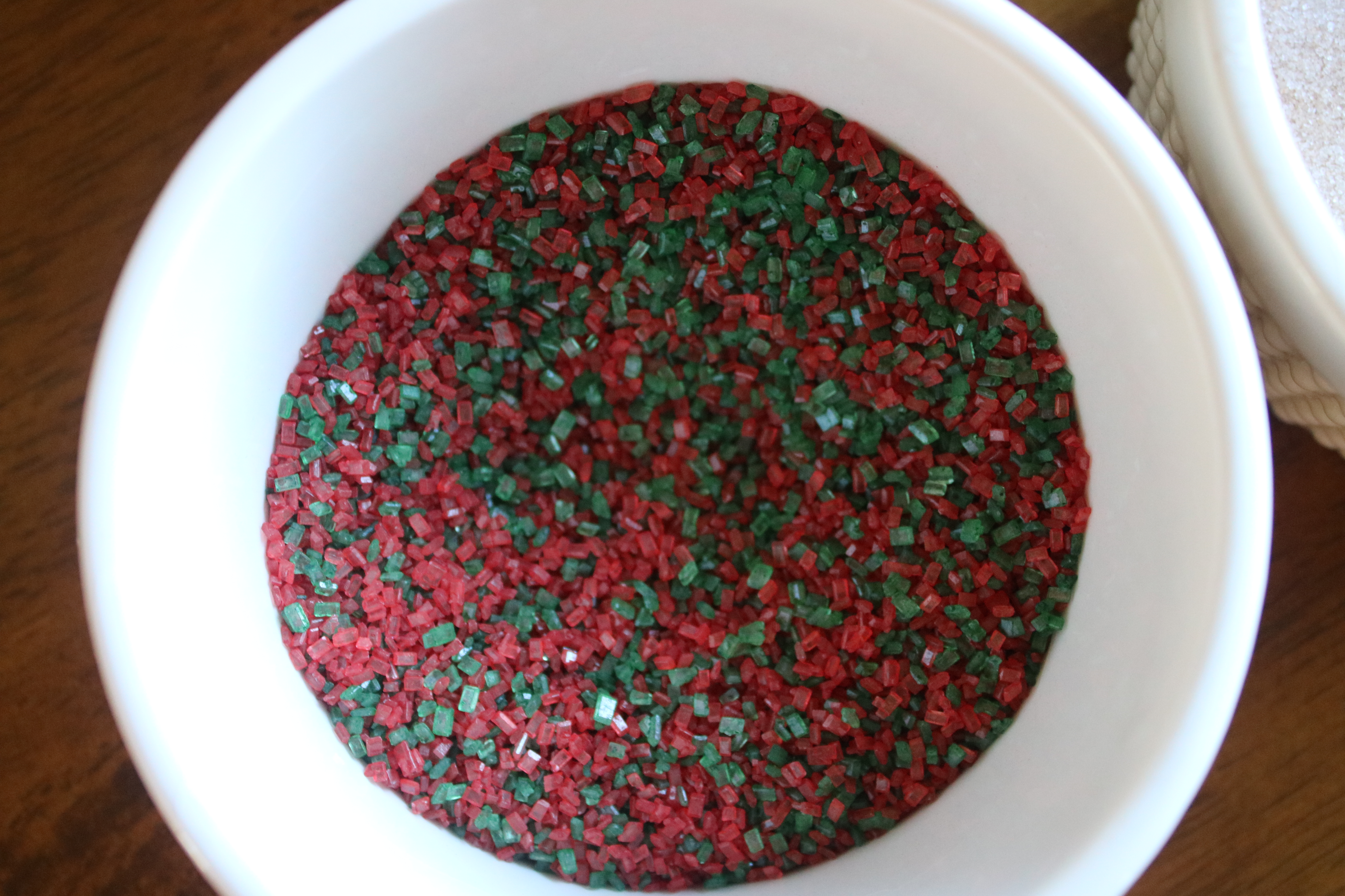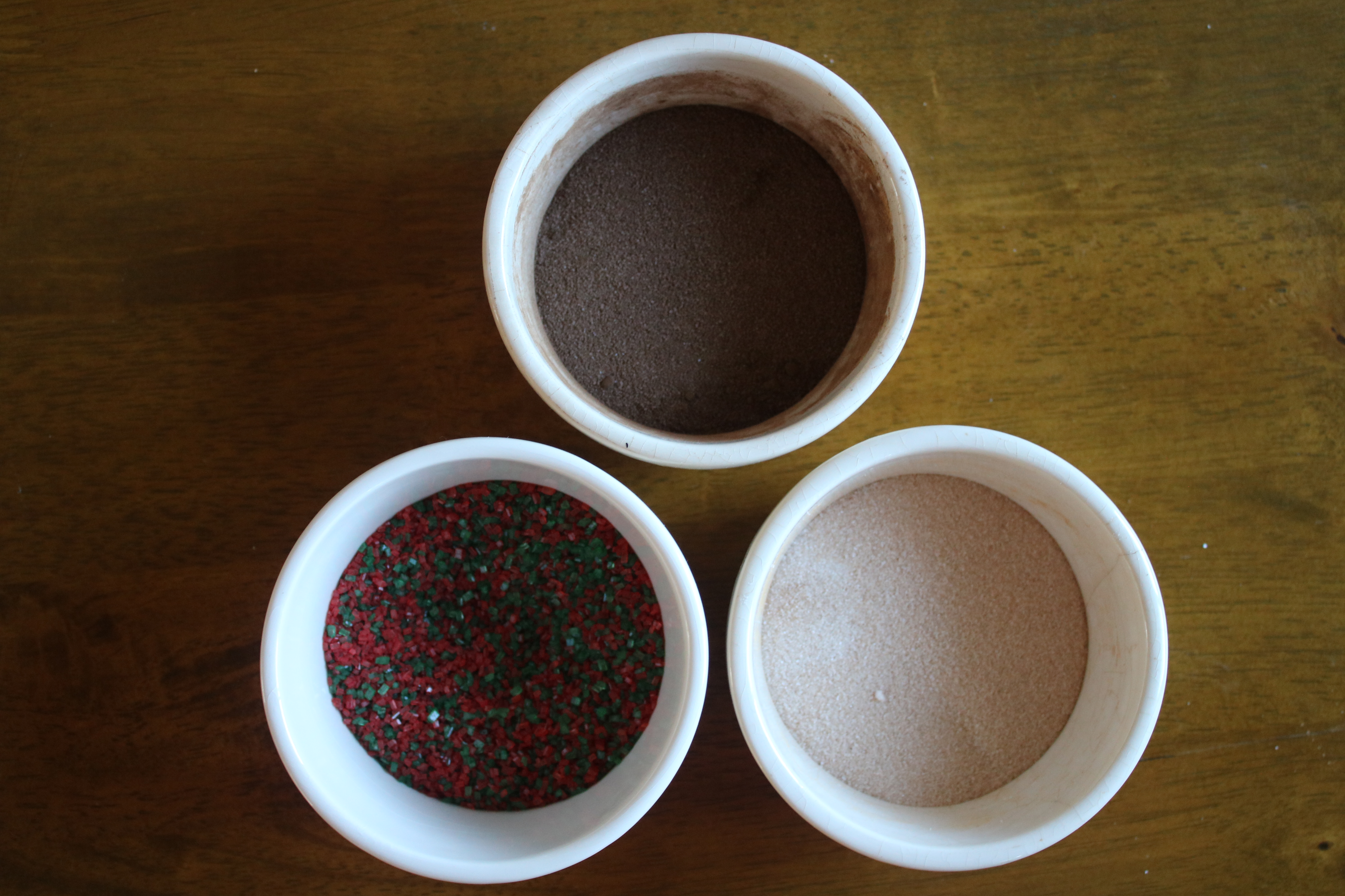 A myriad of toppings: cinnamon sugar, sprinkles, and cocoa cinnamon sugar. I coated most in cocoa, but you could even go crazy and mix them all together!