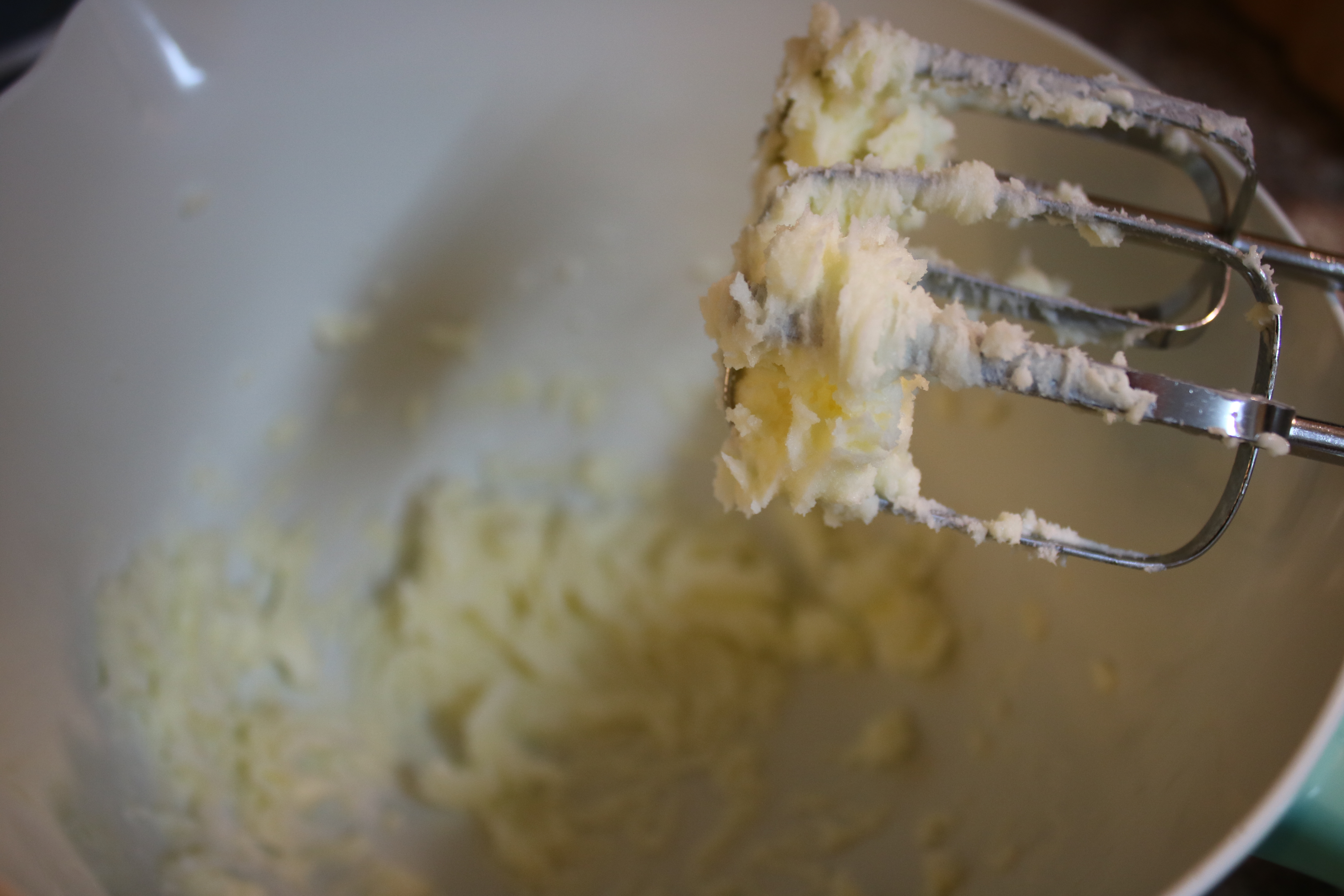 Once the pastry cream is chillin’ in the fridge, start on your rum butter. You want it whipped to a fluffy cloud before you mix in the sugar and rum.