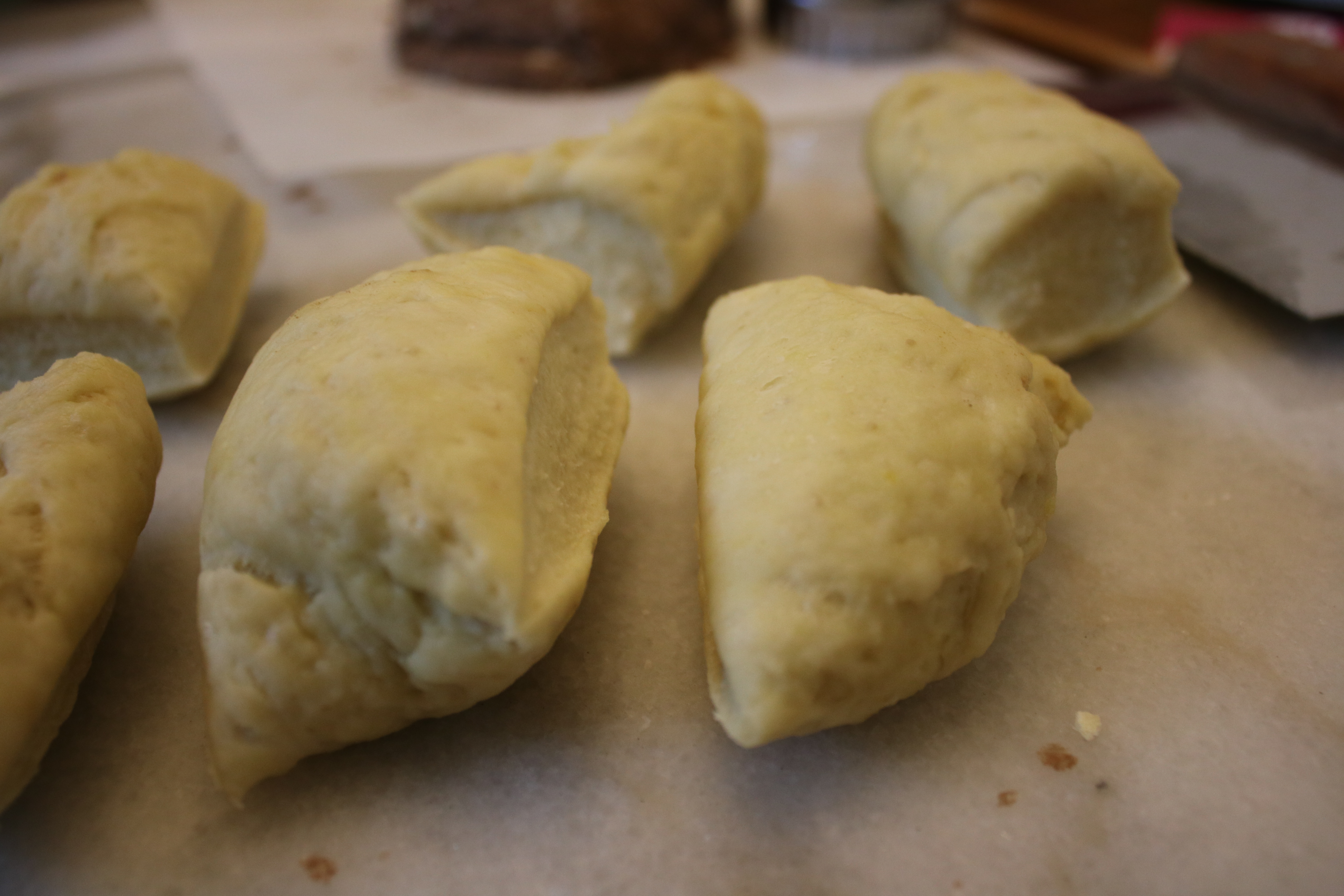 Goofy lil buns, waiting for the oven. You let them proof a second time before baking so they can relax after being shaped. Since the yeast in the first batch wasn’t happy to begin with, the second proof didn’t make much of a difference. In the second batch, they plumped back up to double their size!