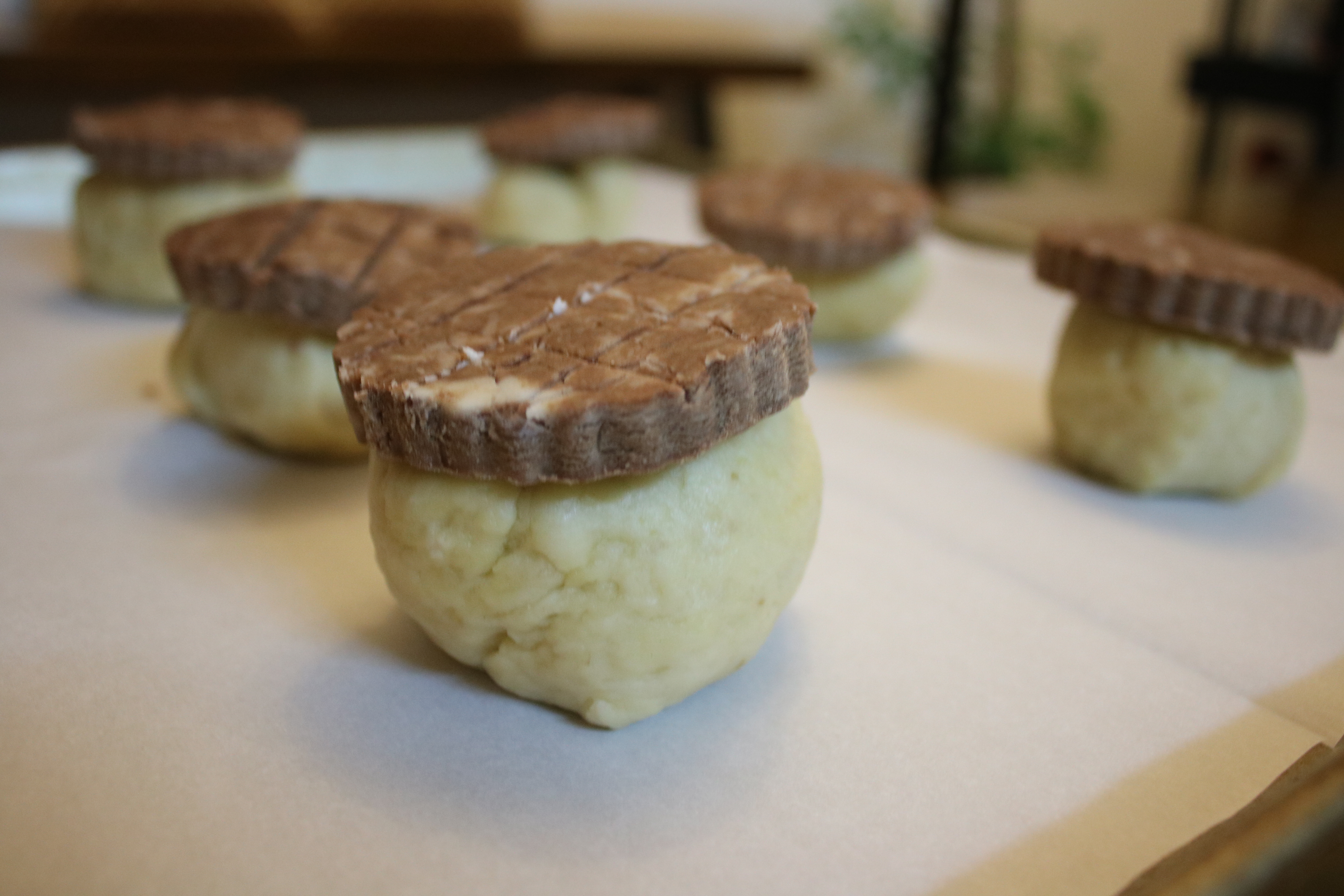 The first batch was rolled out extra thick because I assumed that it would spread out while baking. *buzzer* Incorrect! It holds it’s shape almost perfectly. This is why you have to score it to get the signature cracks. Otherwise, you’ll just end up with a cocoa helmet for your bun (which would still taste delicious, just look less appetizing.)