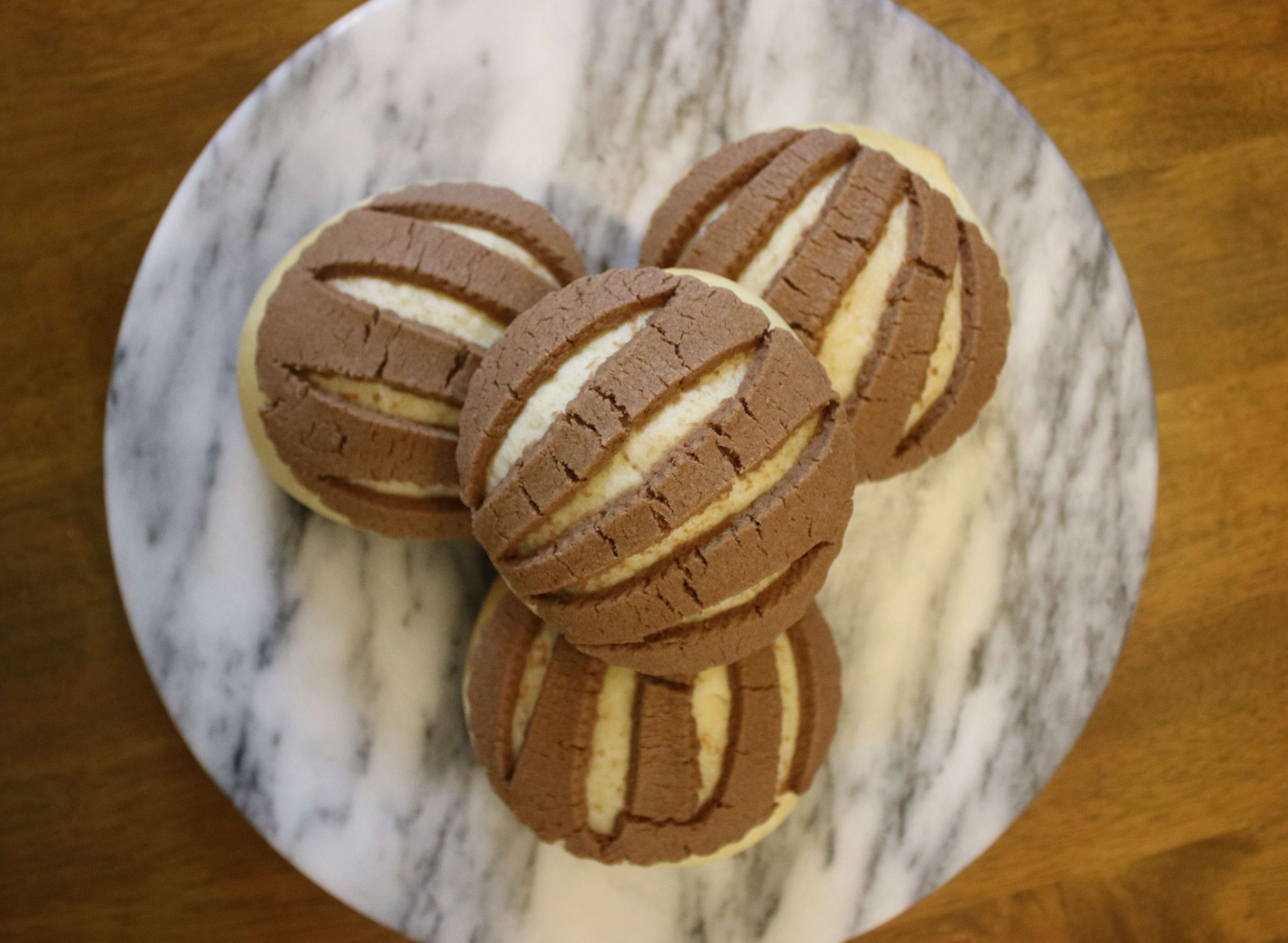 Concha topping recipe from: https://joythebaker.com/2017/10/orange-and-chocolate-conchas-mexican-sweet-breads/