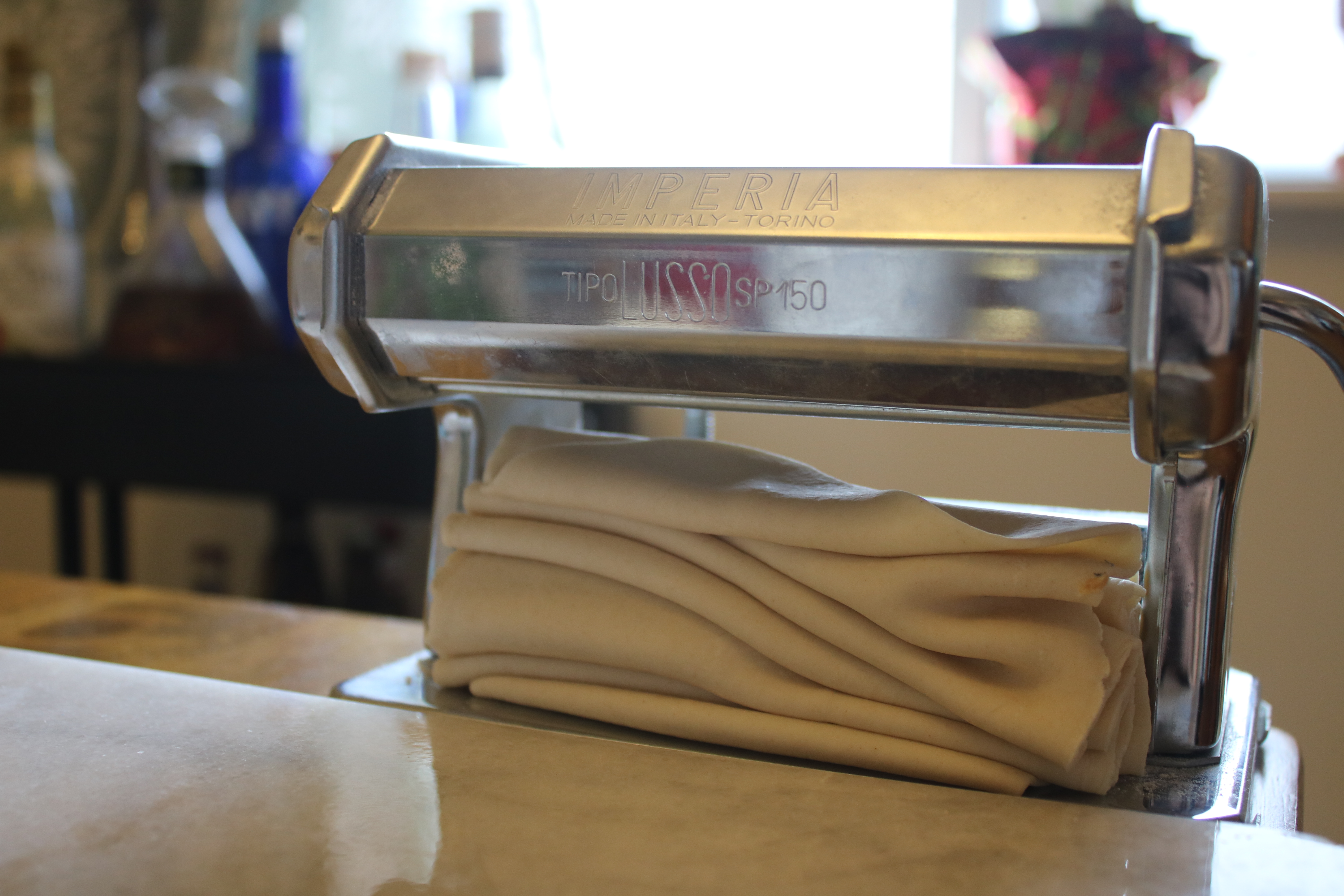 So glad my roommate loves to make fresh pasta! This pasta roller saved my arms the pain of rolling the pastry sheets out to 1mm by hand. Phew.