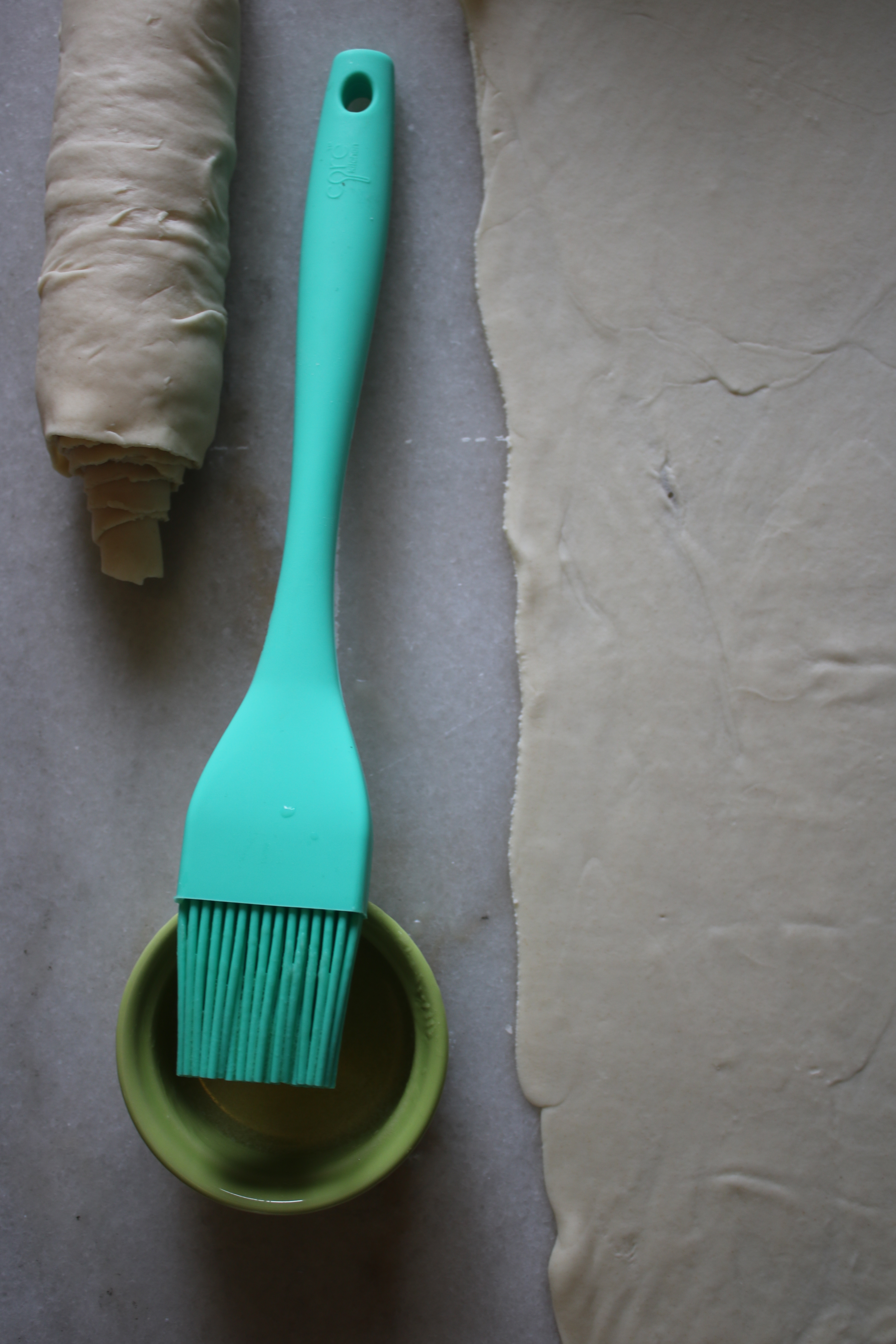 I just had to coax the layers out of hiding with some more butter. (Please excuse my messy table – I was also making a quiche and musubi this weekend so it was a happy mess of ingredients.)