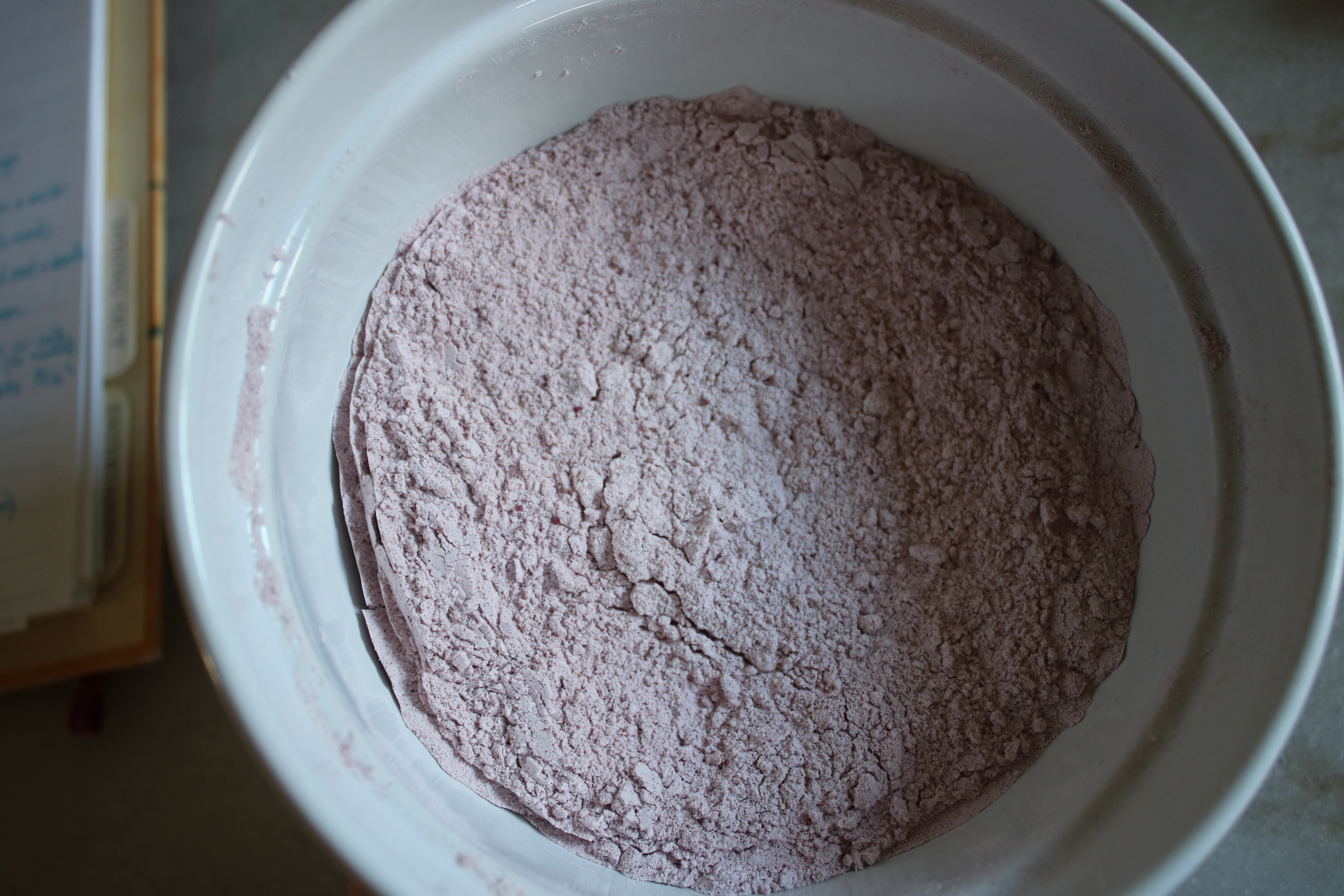 I filled up my little basket with cumin, ras el hanout, cardamom, and dried minced ginger root and orange peel for loose leaf tea. Then I saw the beetroot powder. It’s shockingly pink and surprisingly doesn’t have a strong flavor or smell. They had it out in front in a Valentine’s themed display with a little note explaining how well it works for dyeing baked goods. I didn’t think twice before adding a bag of it to my basket. Apparently spice shops are dangerous for me – too many good things to buy on a whim!