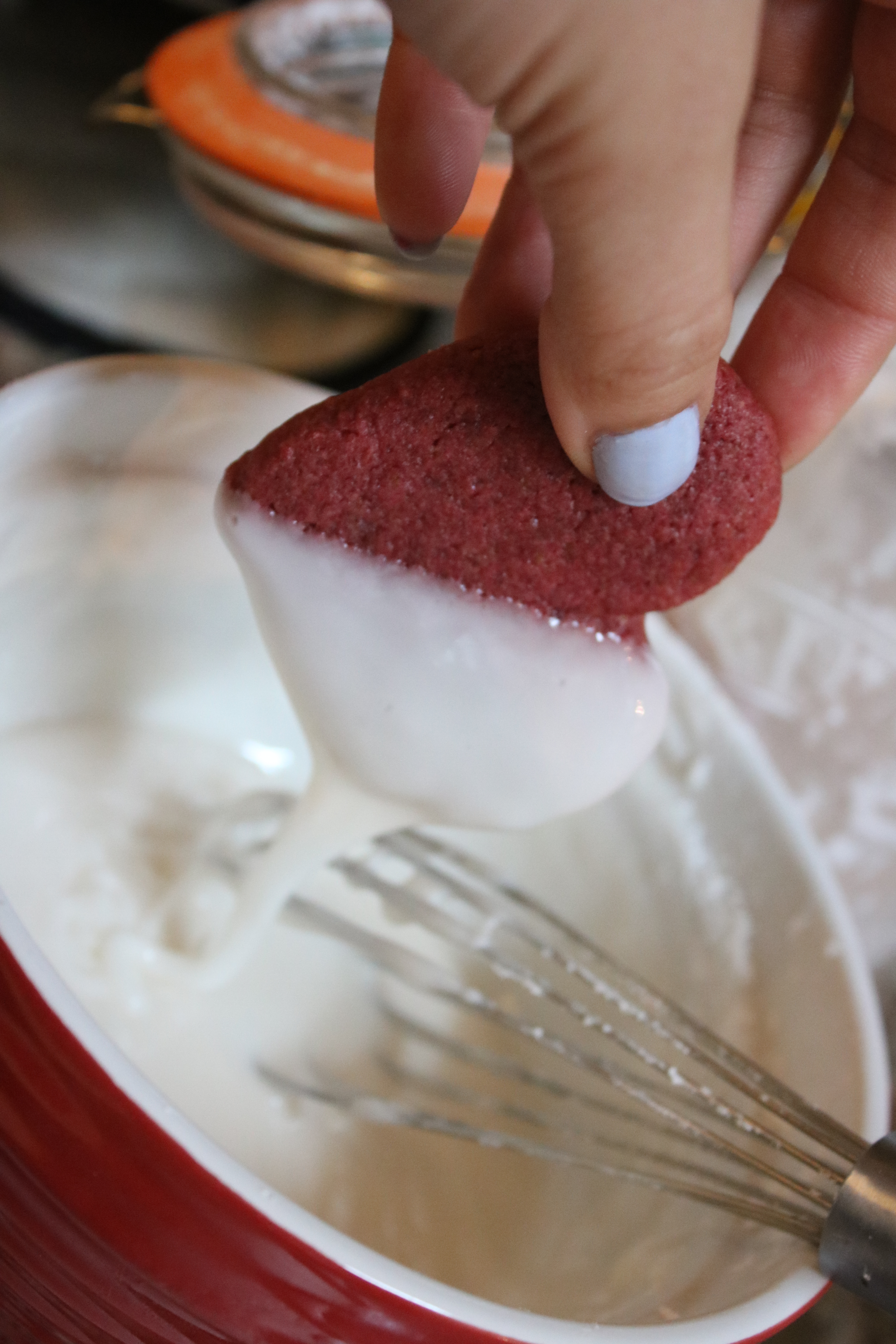 Dunking cookies is a game of patience. I had to wait until the excess dripped off before letting it dry on a rack. I also made sure to pop the air bubbles right after laying them out to dry so they could fill in before the glaze set.