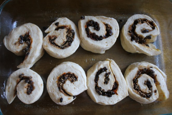 I switched out the dried fruit for the filling to match what I had on hand: orange zest, cinnamon, currants, brown sugar and butter. Who has dried apricots and sultanas on hand? Well, good for you.
