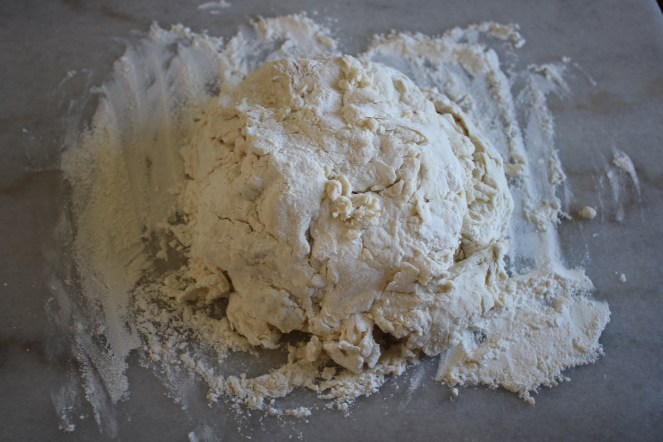 Before and after 4 minutes or so of kneading. Magically comes together into a cohesive lump!