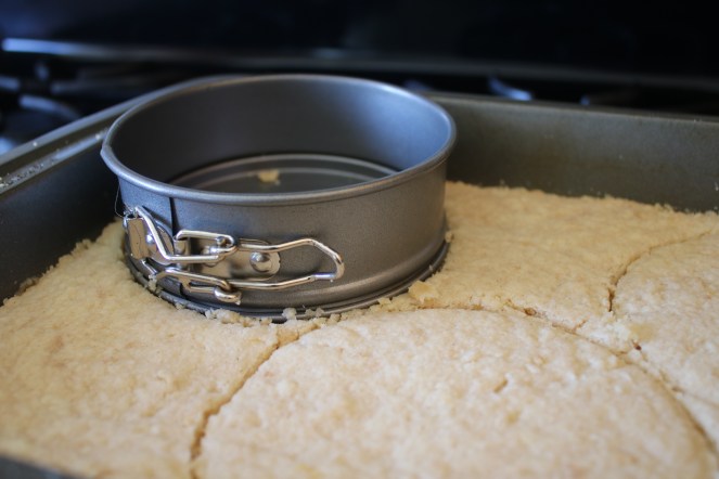 Try to compact down all the crumbs into a smooth surface. You’re then supposed to poke air holes in with a fork, but mine was so crumbly it wouldn’t cooperate. So try it a few times, and if you’re only coming away with crumbs, feel free to skip that step! Mine turned out fine without it.