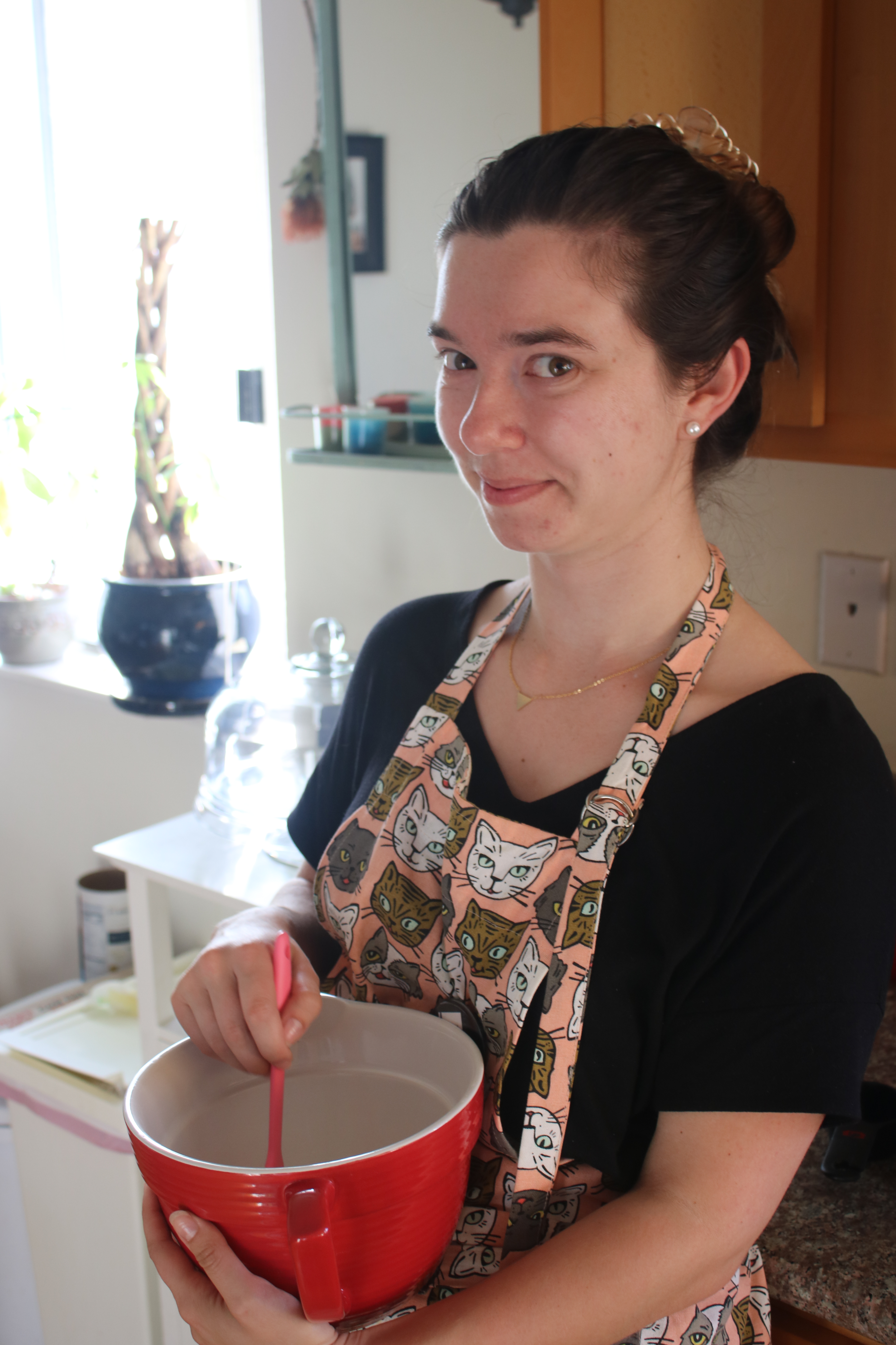 Now my timing wasn’t amazing, since I forgot that the pistachio layer had to set before the vanilla layer could be added on. I already had the gelatin melted in my half and half, so I stirred to keep it from setting for 20 minutes while the pistachio layers chilled in the freezer. This is my where-there’s-a-will-there’s-a-way face.