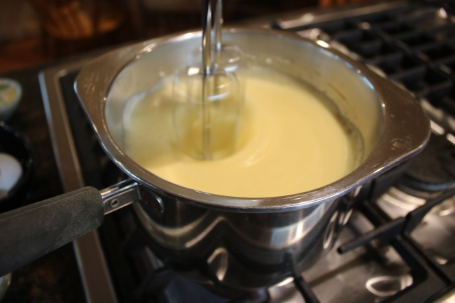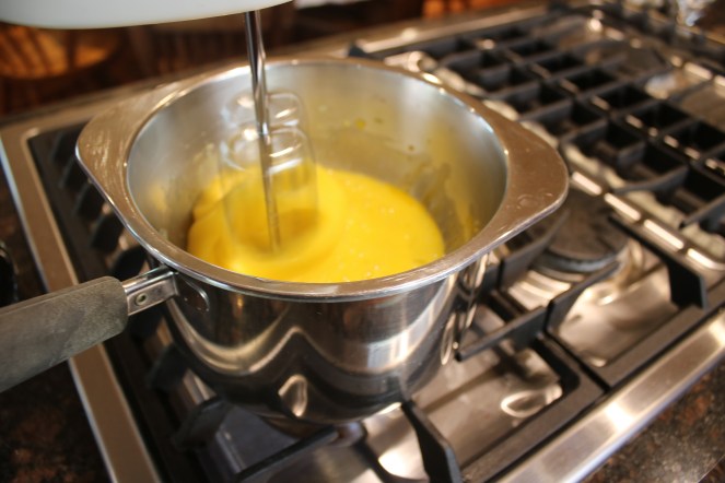 You know it’s close to ready when it gets thicker and turns a lovely pastel yellow color. Oeuf-la-la!