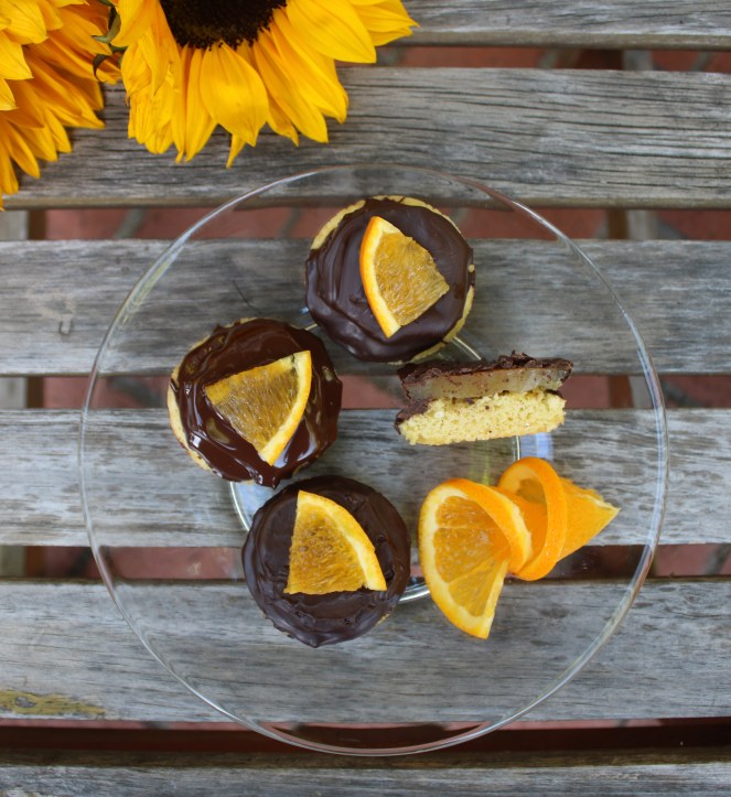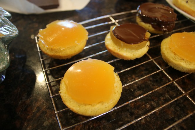 The name comes from Jaffa oranges, which I’ve never heard of but the name is super cute! If we were to call these cookies (or biscuits, depending on you’re viewpoint of the Atlantic) then I wouldn’t be as troubled. I’m used to a dry cookie. Cake, on the other hand, needs to be moist and luscious. If I make these again, I’ll paint the genoise base with a loose orange marmalade and drizzle with chocolate so the cake stays yummy and rich.