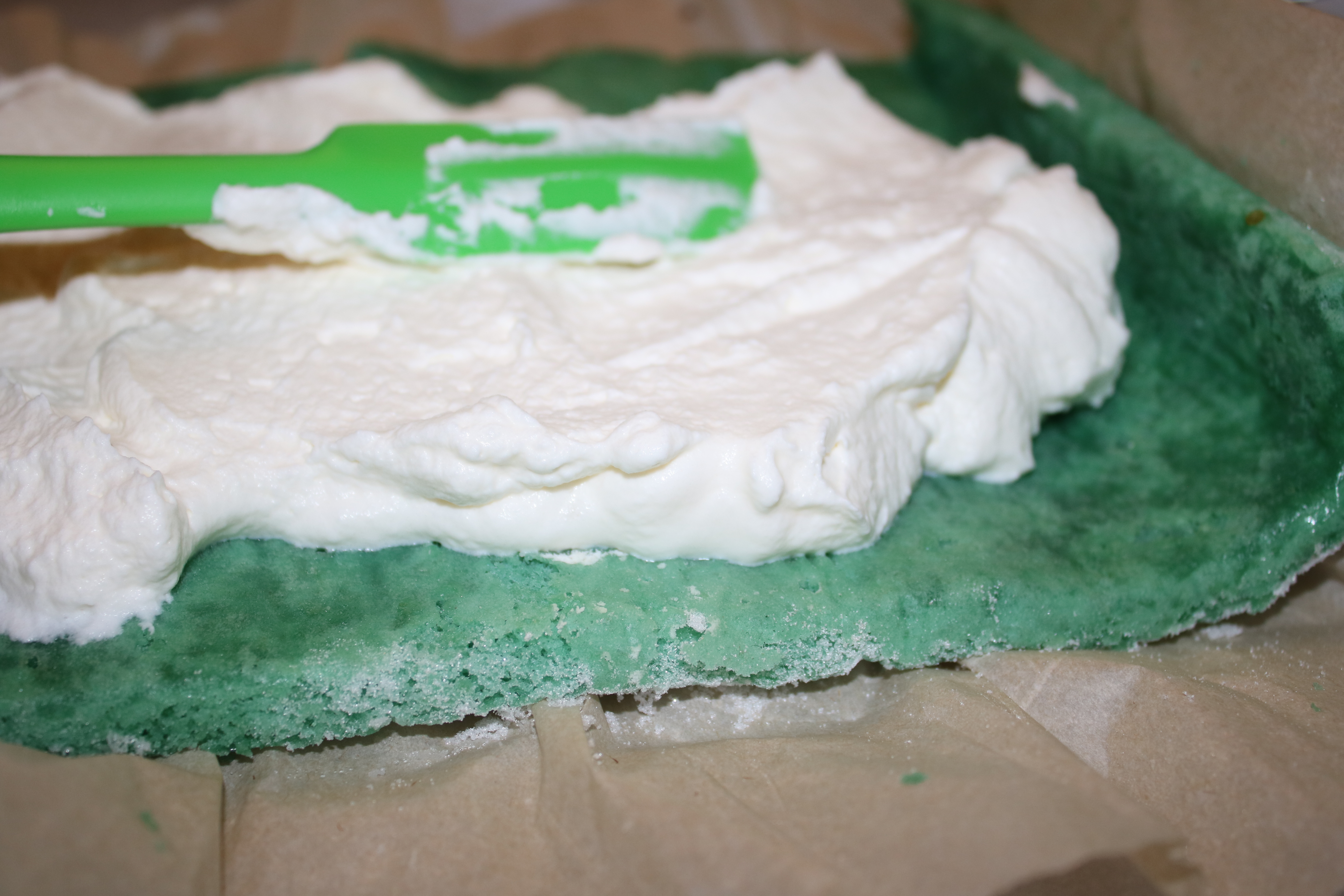 Sponge cakes are so delicate, I lined the parchment paper with sugar so it wouldn’t stick or tear. Plus, added sweetness! The whipped cream mellows out the sugar, I promise.