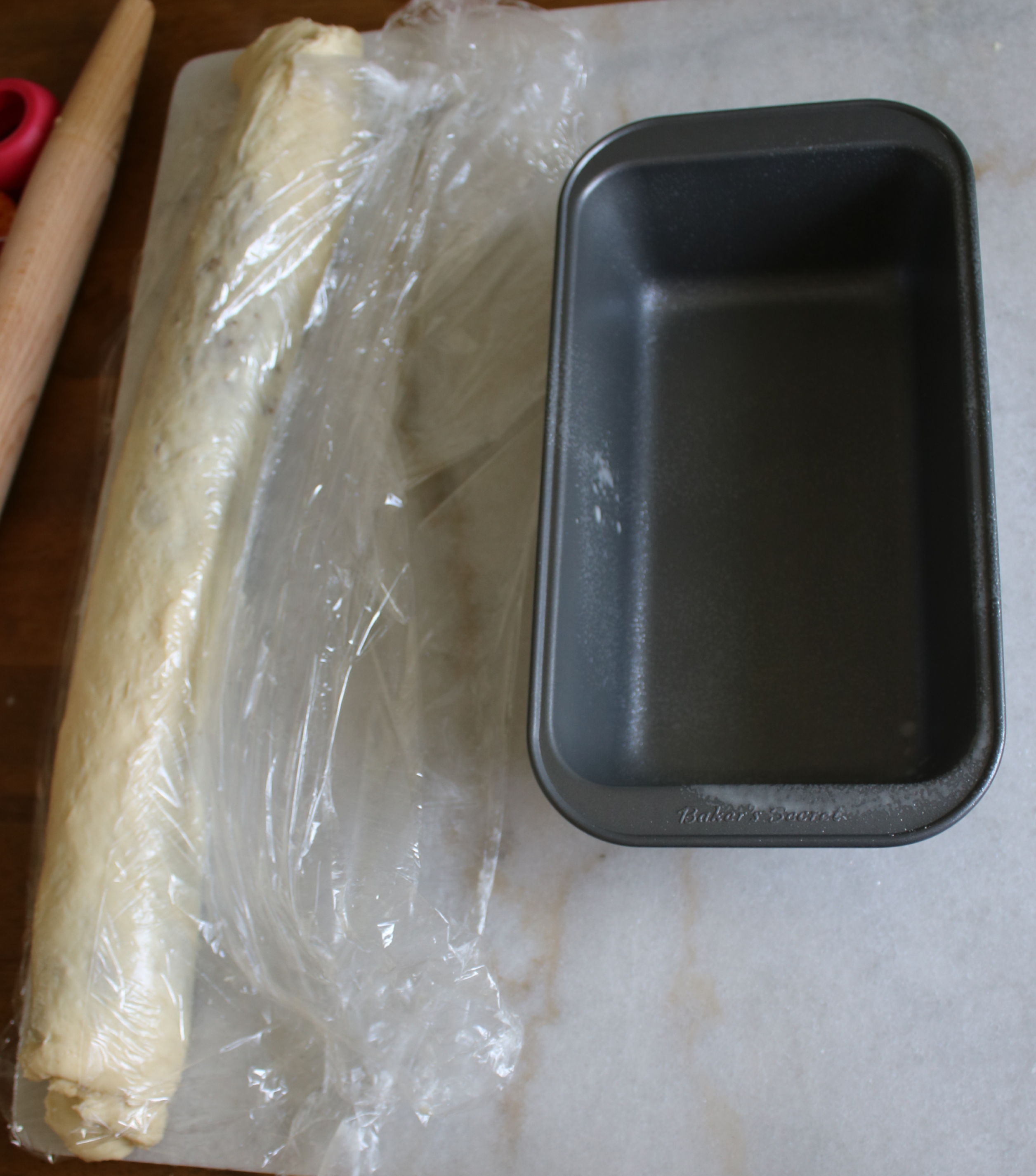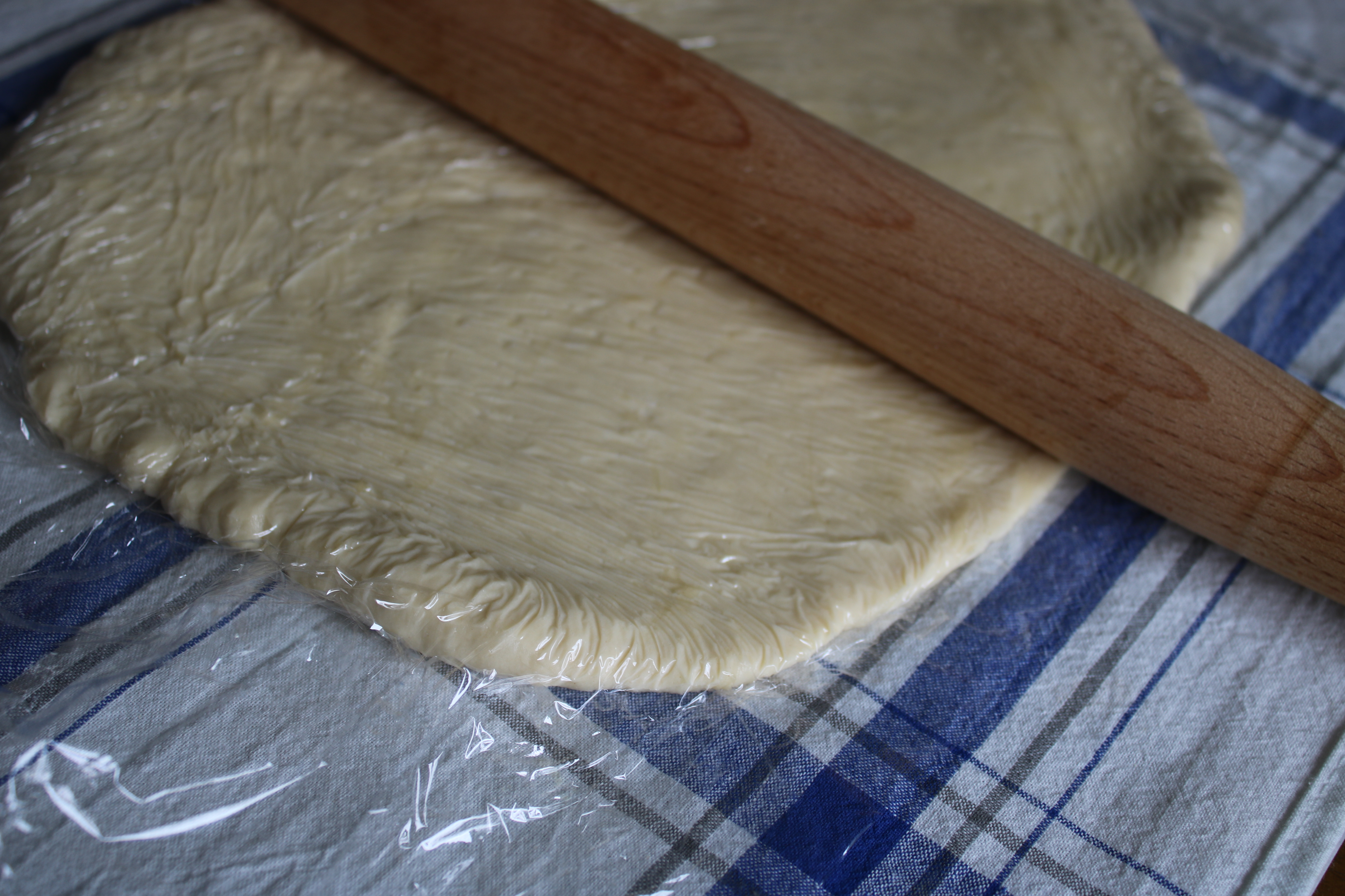 Despite the additional flour, it still wants to grab the rolling pin while rolling. I used another sheet of plastic wrap (sorry Earth) on top and it rolled out like a charm.