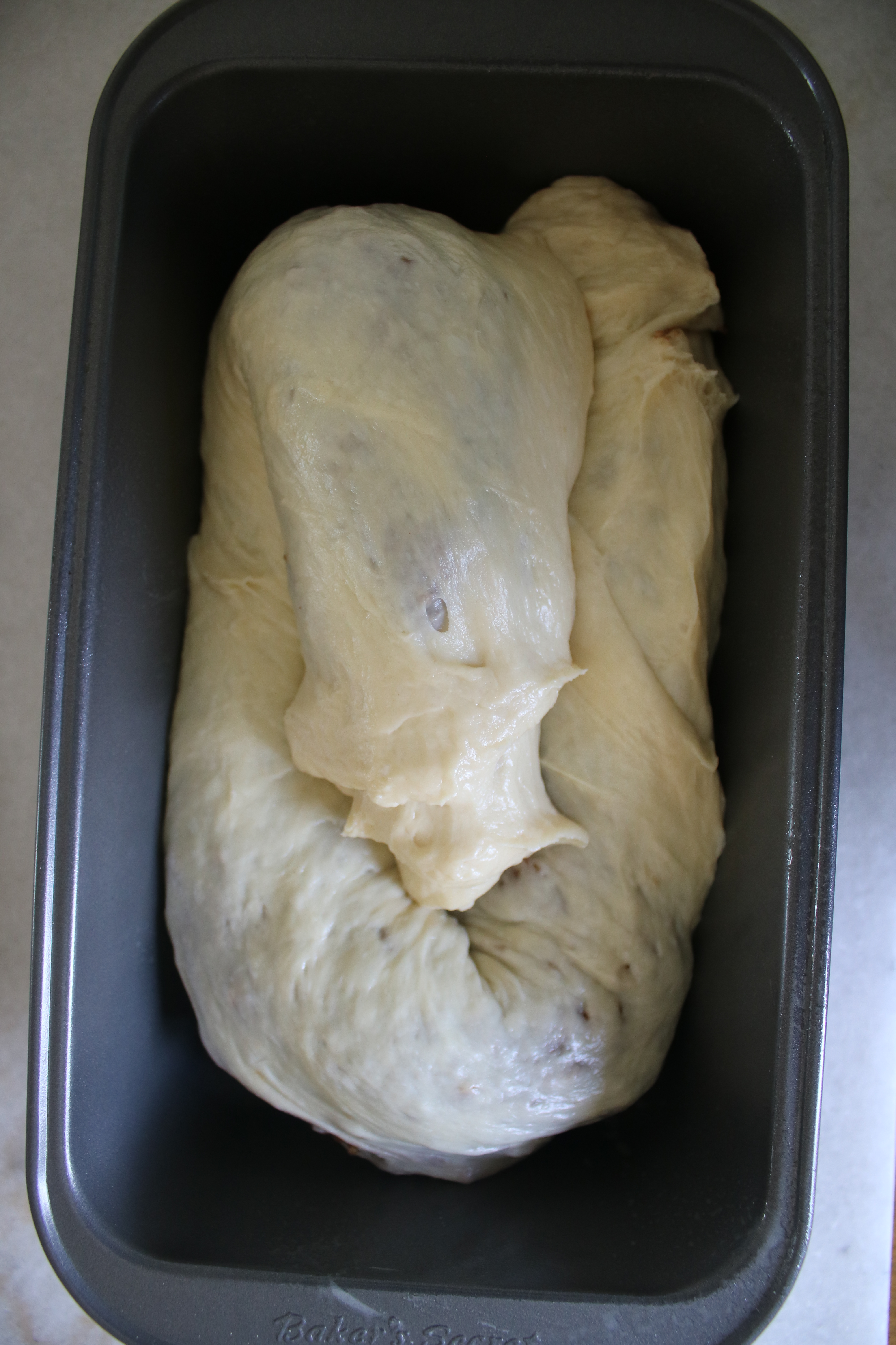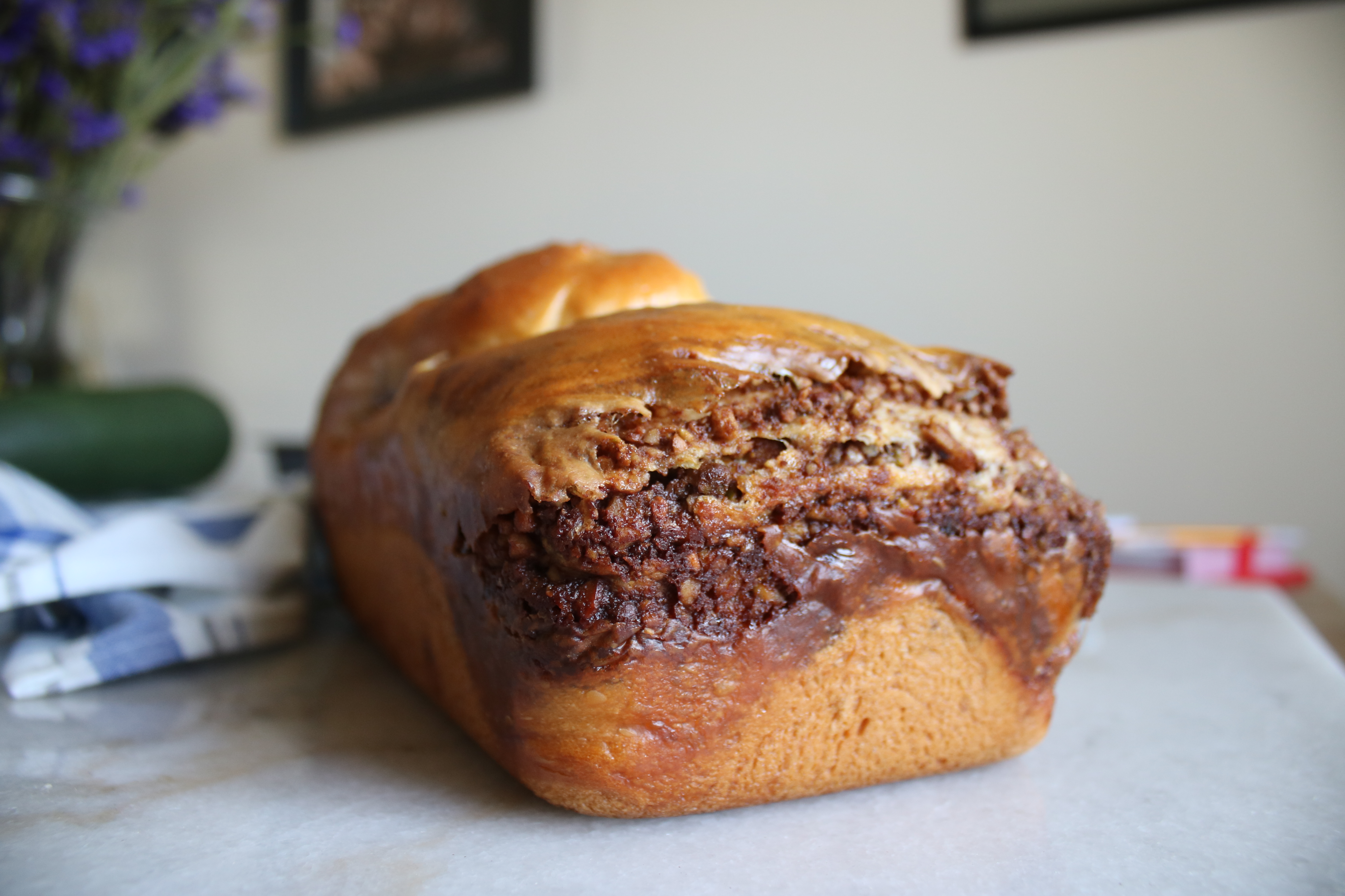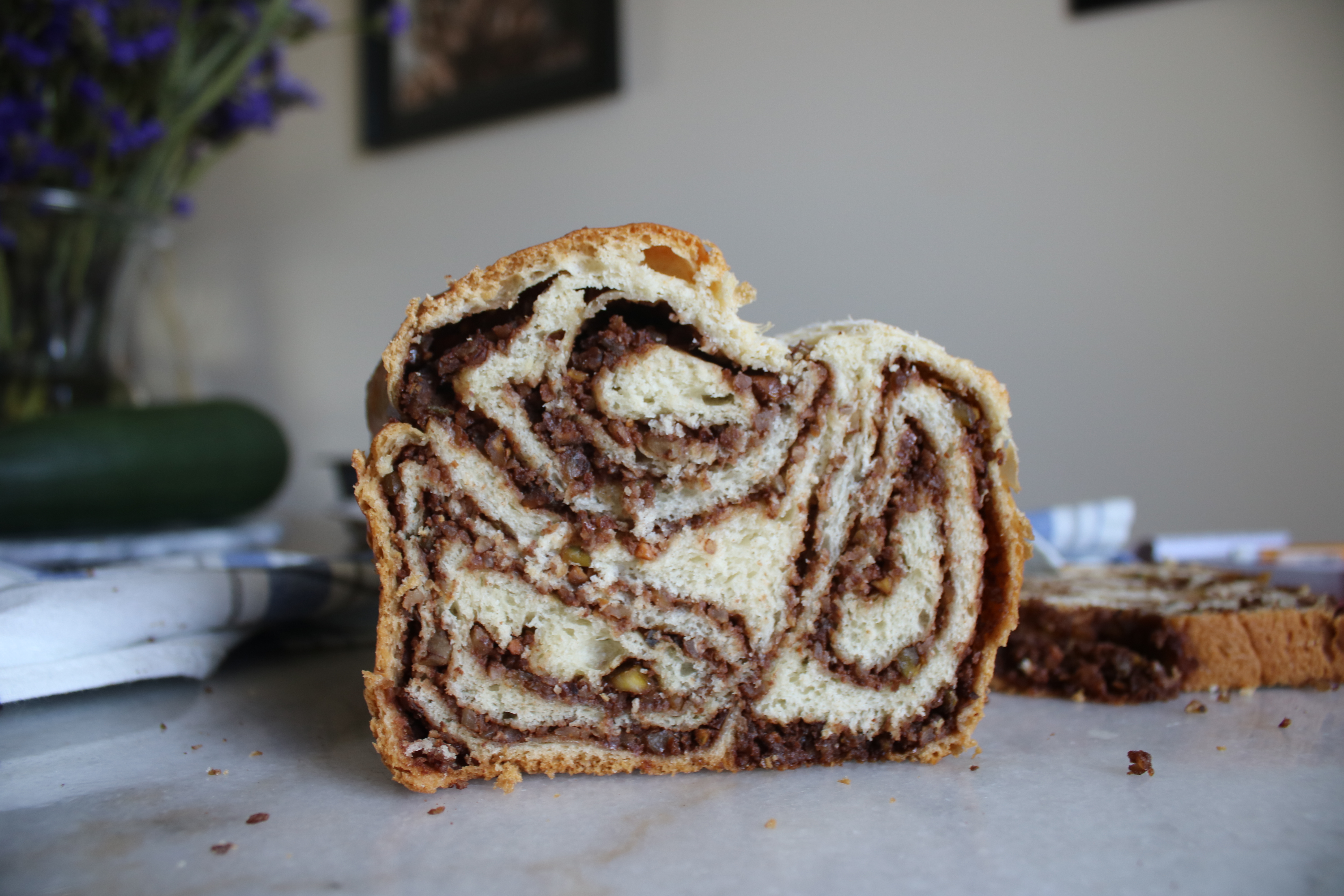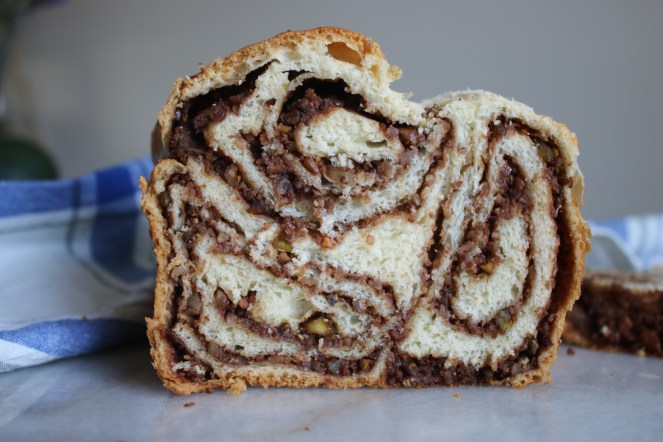You make an enriched dough, roll it super thin and cover it in a layer of ground nuts, spices and sugar. Then you roll it up like a huge sausage and fold it into a loaf pan. The next step is to look down at the bizarre lump of dough trying to do yoga in your pan and wonder if it’ll ever transform into bread. The last step is to cross your fingers and trust the recipe!