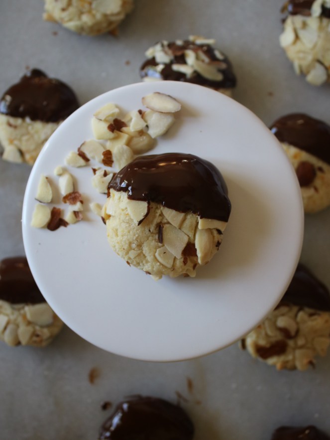 I could probably go through a bag of almond flour per week if it wasn’t so expensive. Honestly, it costs an almond a leg! (Don’t worry, nobody saw that quickly-stifled laugh snort.) These delicious cookies are from Greece, where almonds are associated with happiness, prosperity and good luck. Truly the felix felicis of nuts.