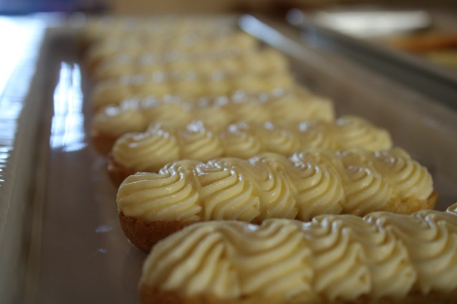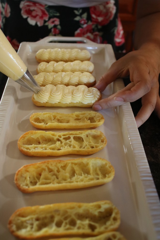 Poof! I poked holes in the bottom of each puff to let the steam out, but I sadly didn’t do it in time for the éclairs. They still held their crispiness! But they would’ve been even more structurally sound if I had.