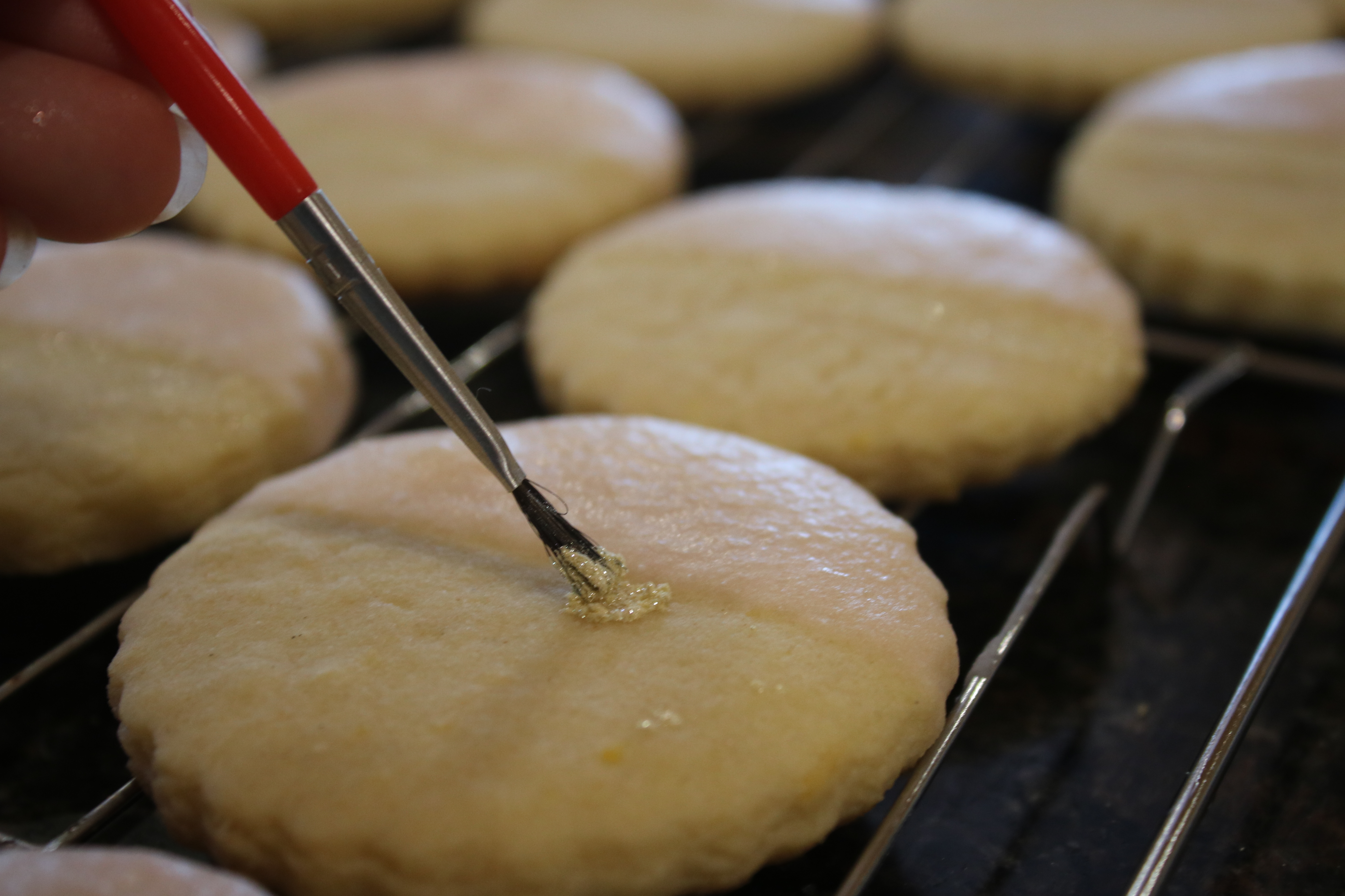 I broke out the edible glitter and a sterilized paintbrush and bedazzled these beauties.