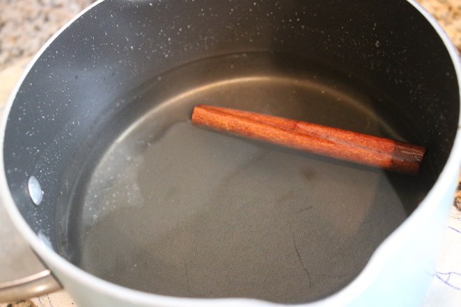 The cinnamon flavor comes from a sugar syrup infused with a cinnamon stick. It made the kitchen smell like Christmas! I might make some more and use it as simple syrup in cocktails . . .
