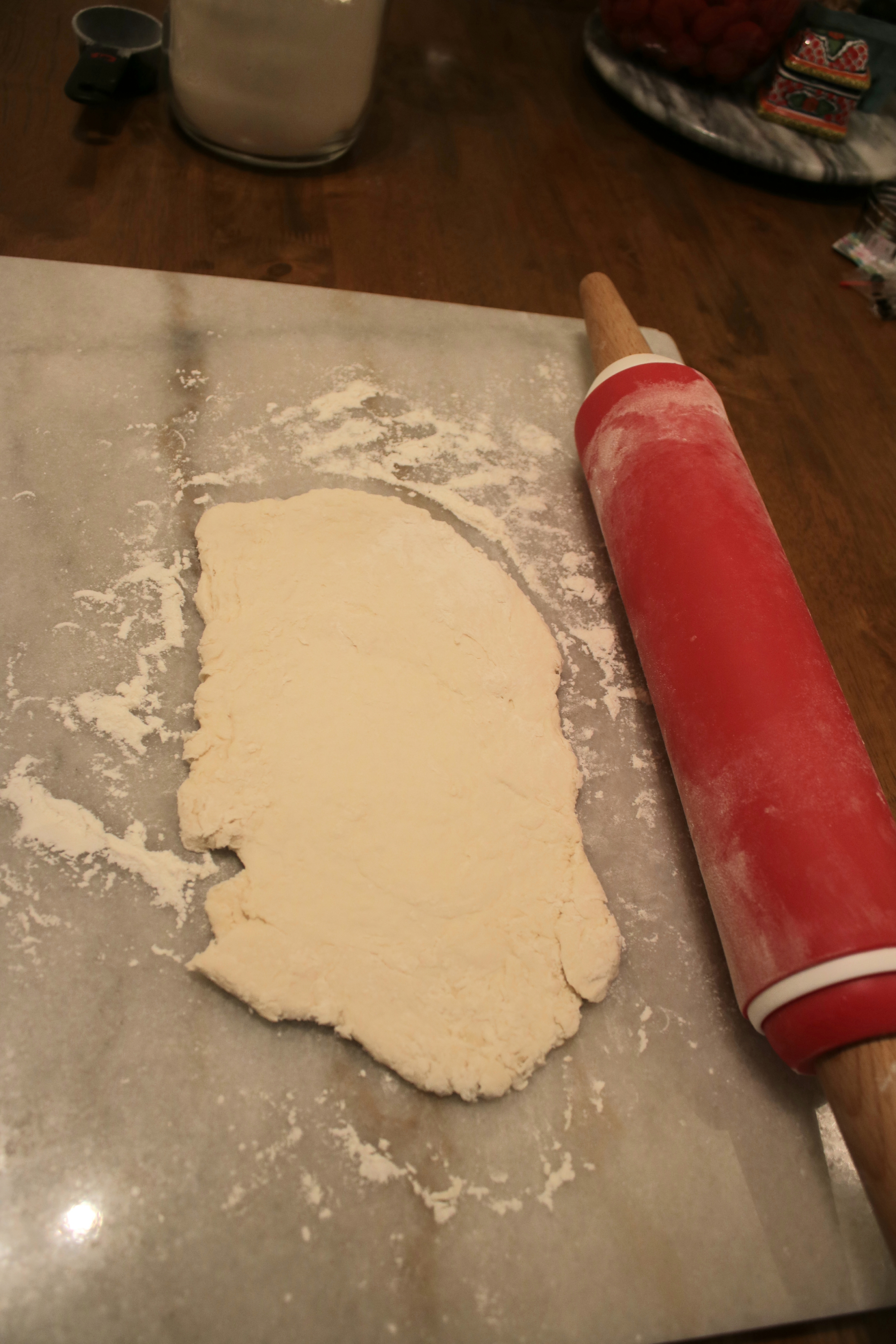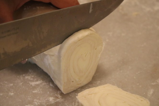 The last step of the dough prep is to roll it up so it makes a swirl when sliced.