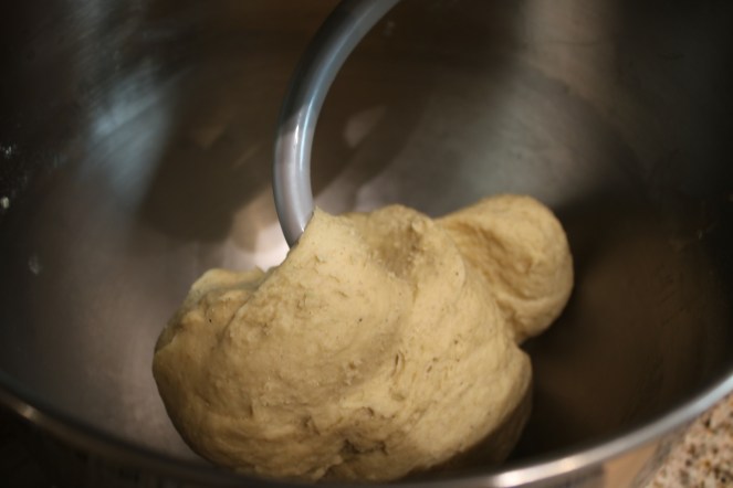 Dough hook making magic happen. (Side note: we just got kittens and one of them is sleeping on my arm while I try to type. This will take me 10 years to finish, but it’s worth it!)