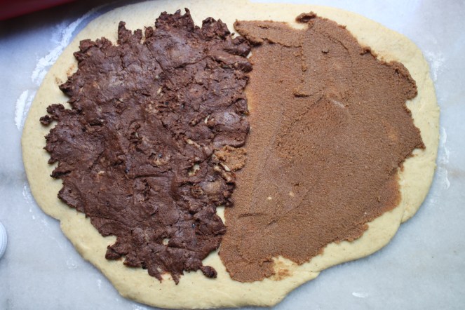 I don’t know about you, but I’m a total sucker for a fresh-baked cinnamon roll in the morning. The warm buttery cinnamon smell, combined with a soft, pillowy texture and just the right amount of sweetness . . . yep, heaven on earth. Henry made a cocoa version of these delights on the most recent season of the Great British Bake Off and I fell in love. Even the name is fun: