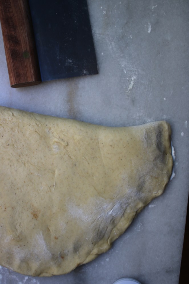 While the dough rests, it’s time to make the two fillings. First up, almond spice butter. More cardamom and cinnamon, mixed with almond flour and brown sugar, and whipped into softened butter.