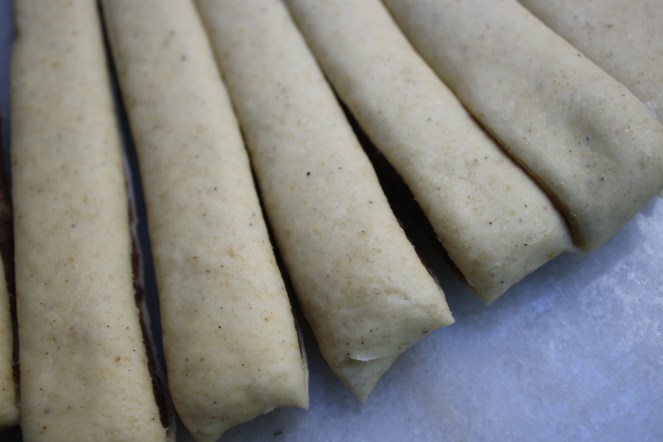 Second up: cocoa pastry cream! Now when I first read it, I balked. My pastry creams always have the consistency of thick pudding and I could see my future pastry oozing all over the place and in general being a disaster. This version however was twice as thick, so it became more of a custard paste to paint on the pastry. Phew. In this case, trust the recipe!!