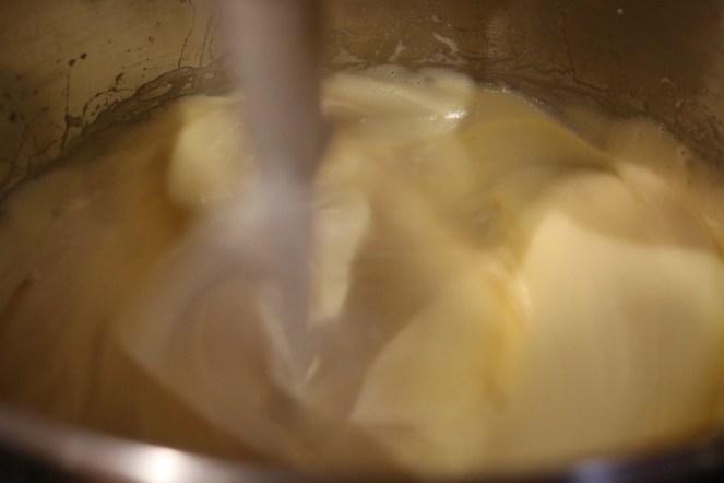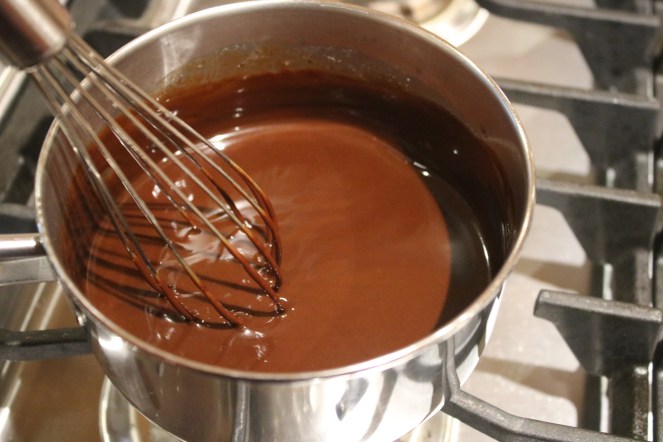 This cake incorporated a dark chocolate ganache and smelled like chocolate heaven. Judging by my pictures, the 2015 edition used dutch-process cocoa to get the oreo-black effect. I had to whip mountains of air into the eggs for this batch, a total of almost 20 minutes of whipping in the stand mixer! Since I was using my mom’s stand mixer which she’s had (and heavily used) since college, I felt the need to apologize to it. It’s a terra cotta brown KitchenAid and isn’t phased by much.