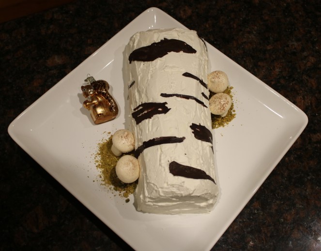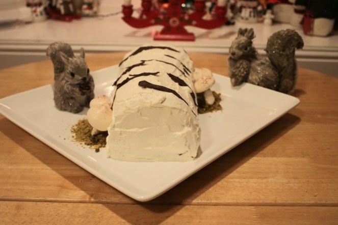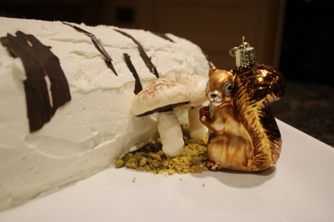I went with the single log look, without additional branches. I think the squirrels approved. Next time I’ll need to try doing one with a ganache coating so I can make textured bark! Stay tuned for 2020.