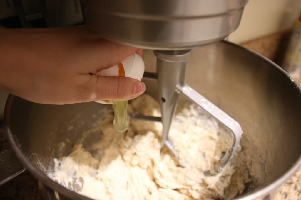 While I felt like a boss with my one-handed egg cracking, this was the moment of my dough fail. I halved the whole recipe except for the eggs, essentially doubling the moisture of the dough in one fell swoop. When you halve a recipe, be like Santa. Make your list and check it twice!!