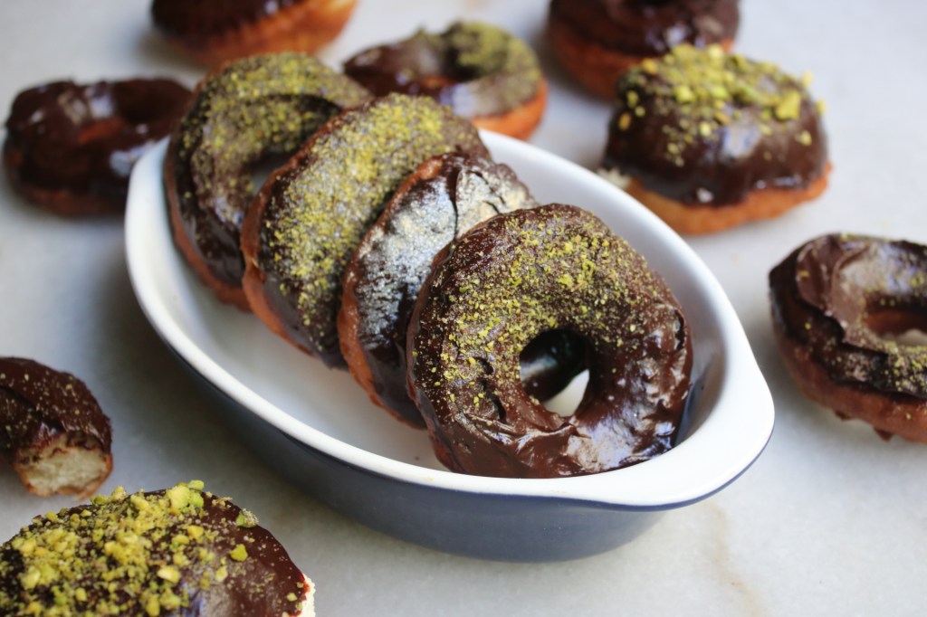 Does a raised doughnut count as bread? Discuss. # 157: Chocolate Pistachio Doughnuts