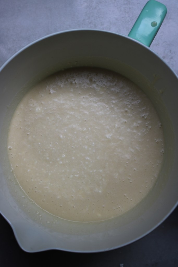 The recipe called for straining, but since this rice flour is rocky at room temp, it ended up separating out all the flour from the rest of the ingredients. Sigh.