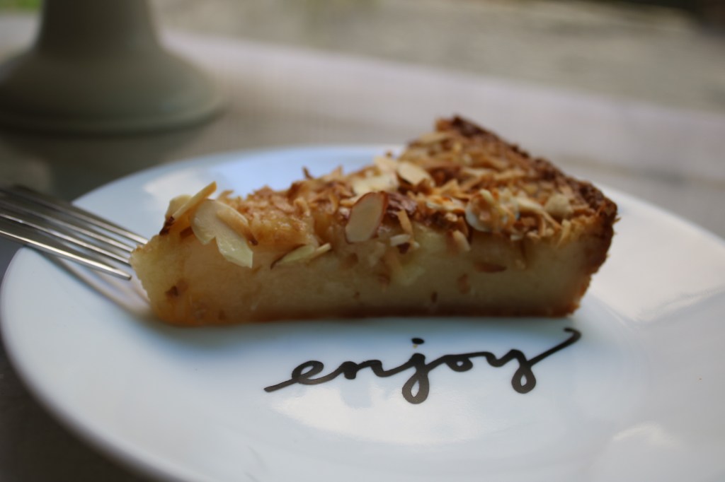 This is essentially the same as Hawaiian butter mochi, which is an sweetened and enriched baked version of Japanese mochi. Using rice flour as a base instead of wheat flour gives it a gooey texture that resembles a dense, sticky custard. The coconut milk and almond extract adds a luscious, almost tropical flavor to each bite.