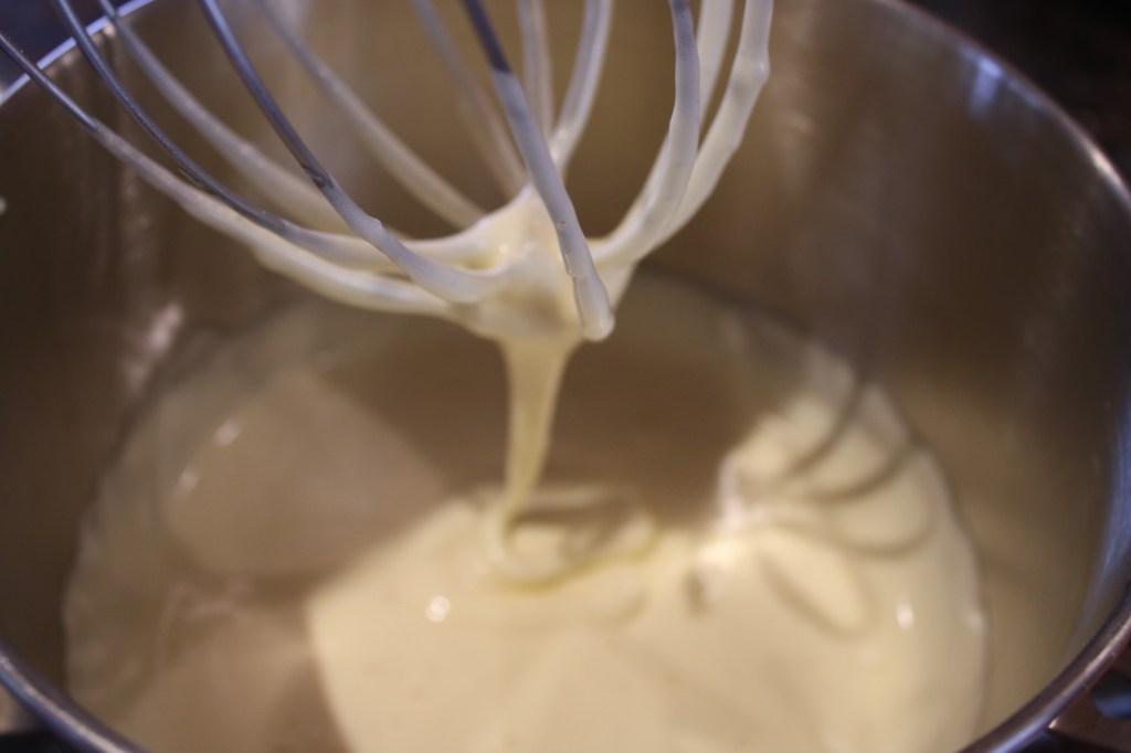 Make sure the eggs get really light and fluffy. They go from a lovely golden color to . . .
