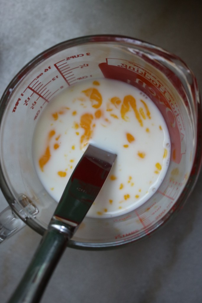 Whisked the egg into the milk so it would more easily mix into the butter/flour sand.