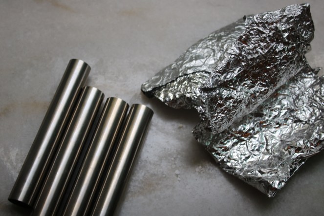 The molds were a true pain in the butt. You know me and not wanting to buy single-use tools for the kitchen. There was no way it was worth me buying conical molds just for this one recipe, so I got creative with some foil and my straight cylinder molds. Those babies have come in handy with a few of my bakes (looking at you cannolis and chimney cakes!)
