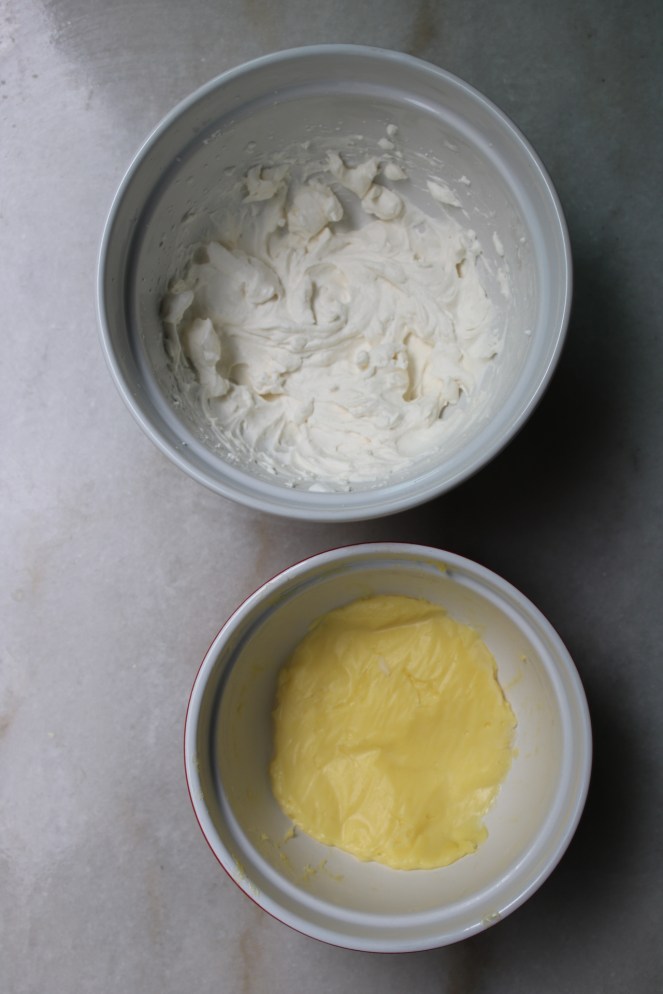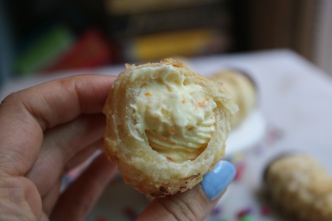 The filling was an orange and ginger creme legere and I was intrigued by the new name for a custard-y cream. From a little online research, it looks like it’s also commonly called “diplomat cream.” The French name translates to “light cream,” which makes a lot of sense as it’s pastry cream that’s been mixed with chantilly cream. It makes a lighter, fluffier filling that still has the rich custard taste. *chef’s kiss*