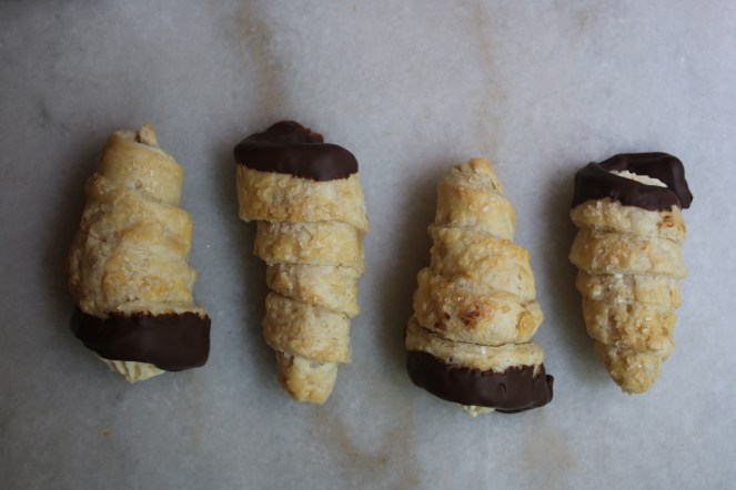 I omitted the ginger but kept in the orange, because YUM. If I do them again, I want to coat the whole inside of the horn with melted chocolate, so the joy of the first few chocolaty bites can be continued through the whole pastry experience.