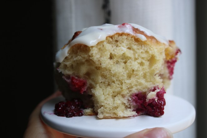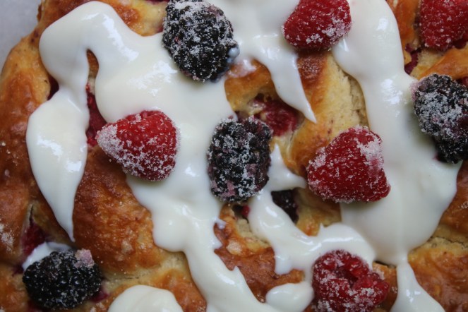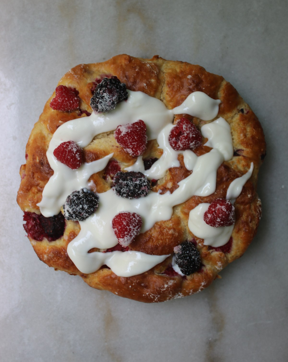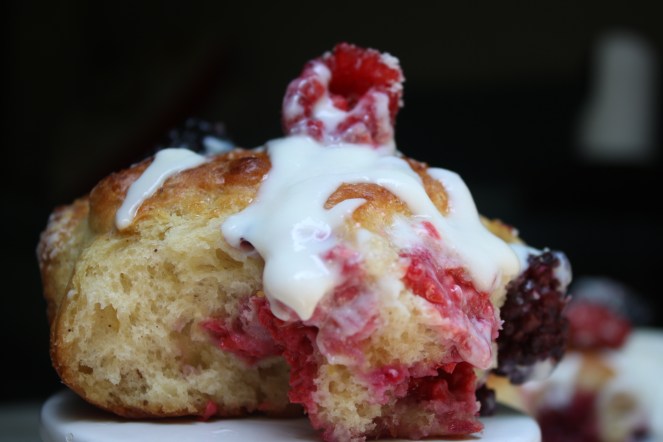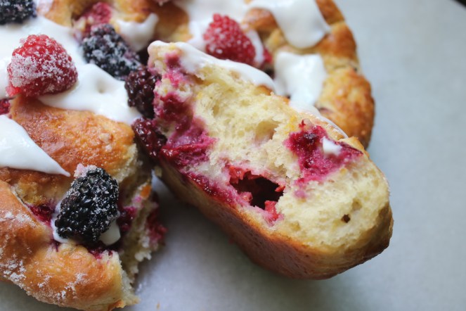 A fluffy brioche pillow, studded with sparkling berry gems and drizzled with a sweet ricotta glaze. I’m feeling a little fancy today, can’t you tell? # 183: Berry Brioche