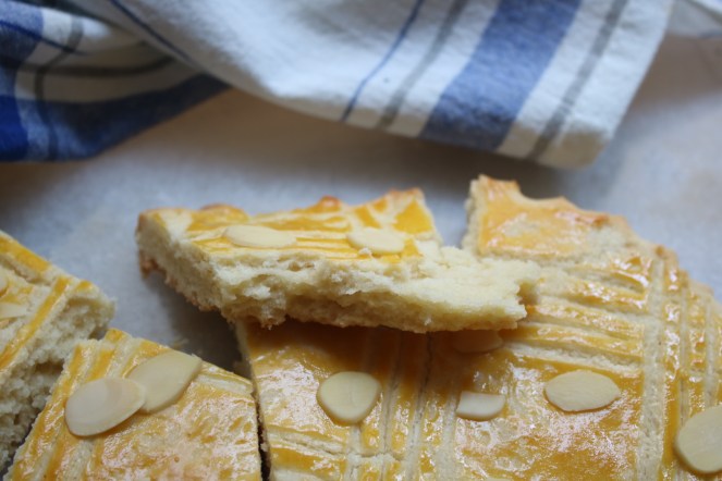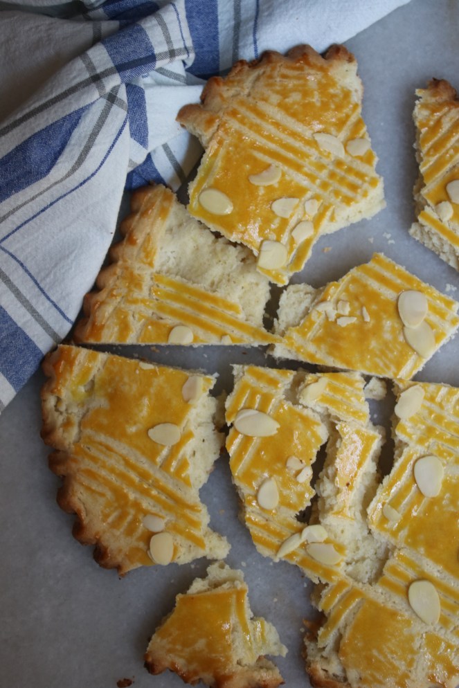 What could be better than a giant shortbread cookie? Especially one scented with apricot brandy and covered in almonds – yes please.