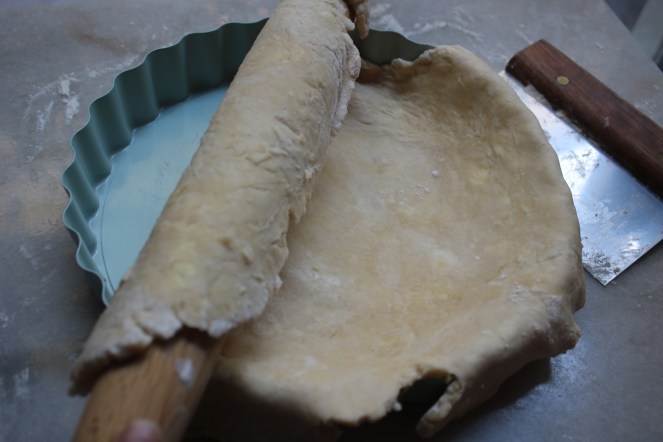 Big news: this is the first time the roll-it-over-the-rolling-pin-to-transfer-the-dough-without-breaking-it shenanigan has worked for me! Not a single tear (of the rip variety or the salt water kind.)