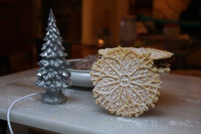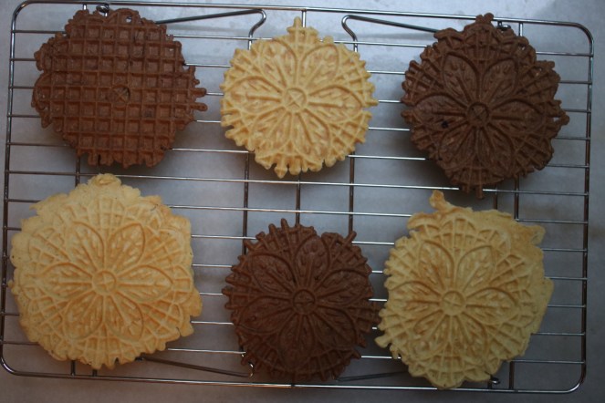 It’s snowing in my kitchen! Flurries of sweet and spiced snowflakes on the forecast for this weekend. # 202: Cocoa & Cardamom Pizzelles