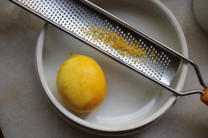 I had two meyer lemons from Nate’s parents’ backyard and two Safeway lemons. I know I’m biased to the homegrown version, but meyer lemons themselves are sweeter and have thinner pith. They smell more “lemony” in my opinion but it’s hard to not smell lemon when you’re zesting with a microplane. I always imagine the lemon peel is just a bunch of pockets filled with lemon-scented oil that’s released into the world when you break down the protective walls with your zester.