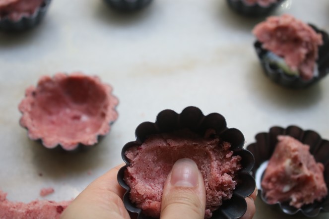So I’m the worst and didn’t take any pictures of making the crust (I’m sorry!) But this is just my classic sweet shortcrust, with a little added beet powder for a pop of color. It didn’t mess with the flavor at all, so I might try doing powdered freeze-dried blueberries next time! Though a little blueberry with a lemon tart would honestly be delightful.